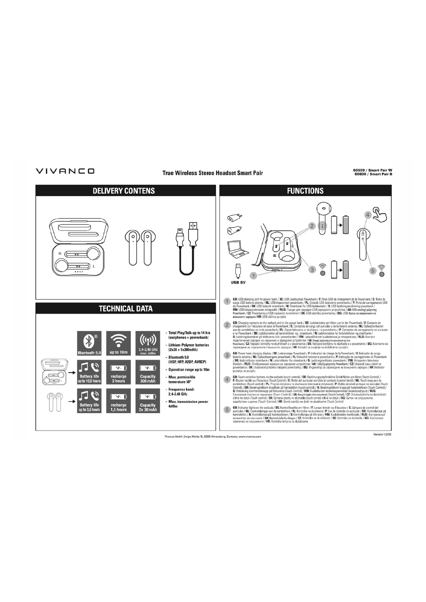 Smart Pair - Casque VIVANCO - Notice d'utilisation et mode d'emploi gratuit
