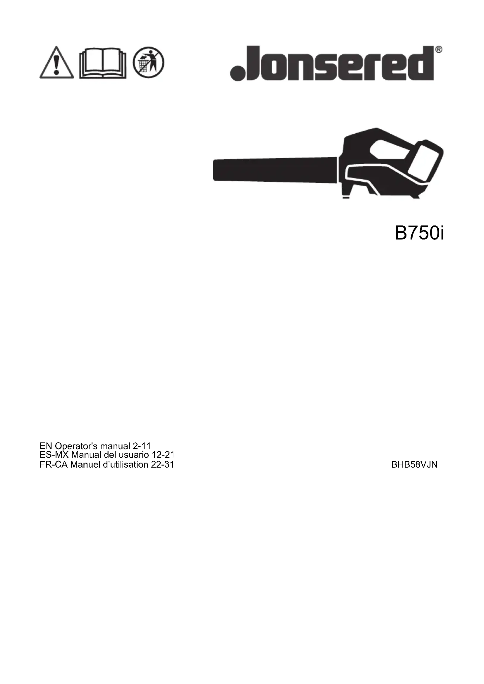 B750i - Souffleur JONSERED - Notice d'utilisation et mode d'emploi gratuit