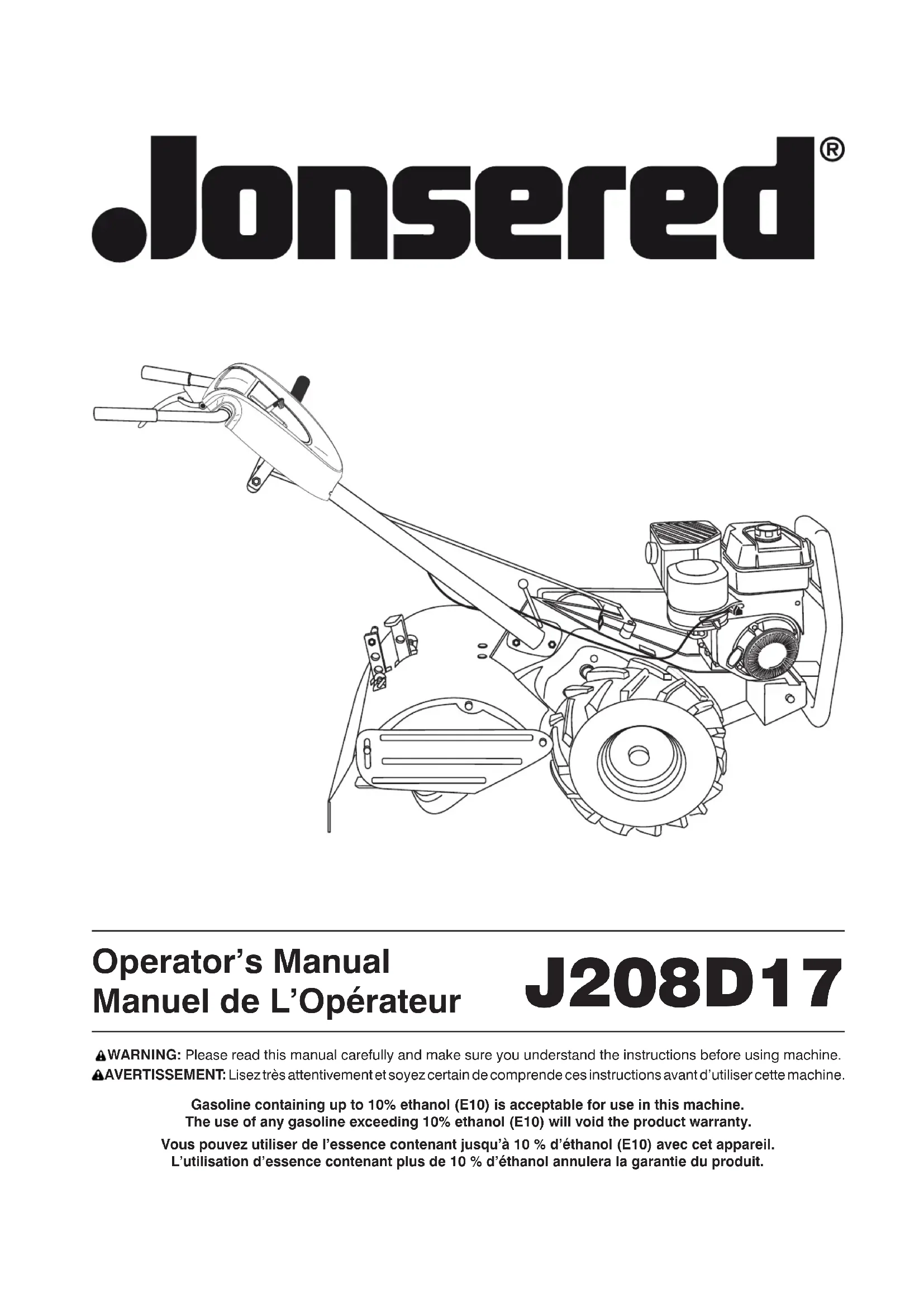Retrouvez gratuitement la notice de l'appareil J208D17 JONSERED au format PDF.