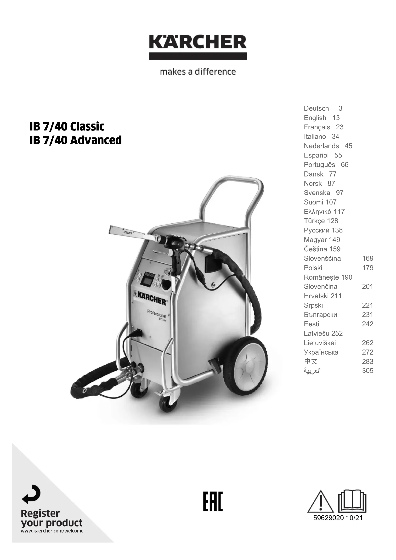 Retrouvez gratuitement la notice de l'appareil IB 740 Classic Kärcher au format PDF.