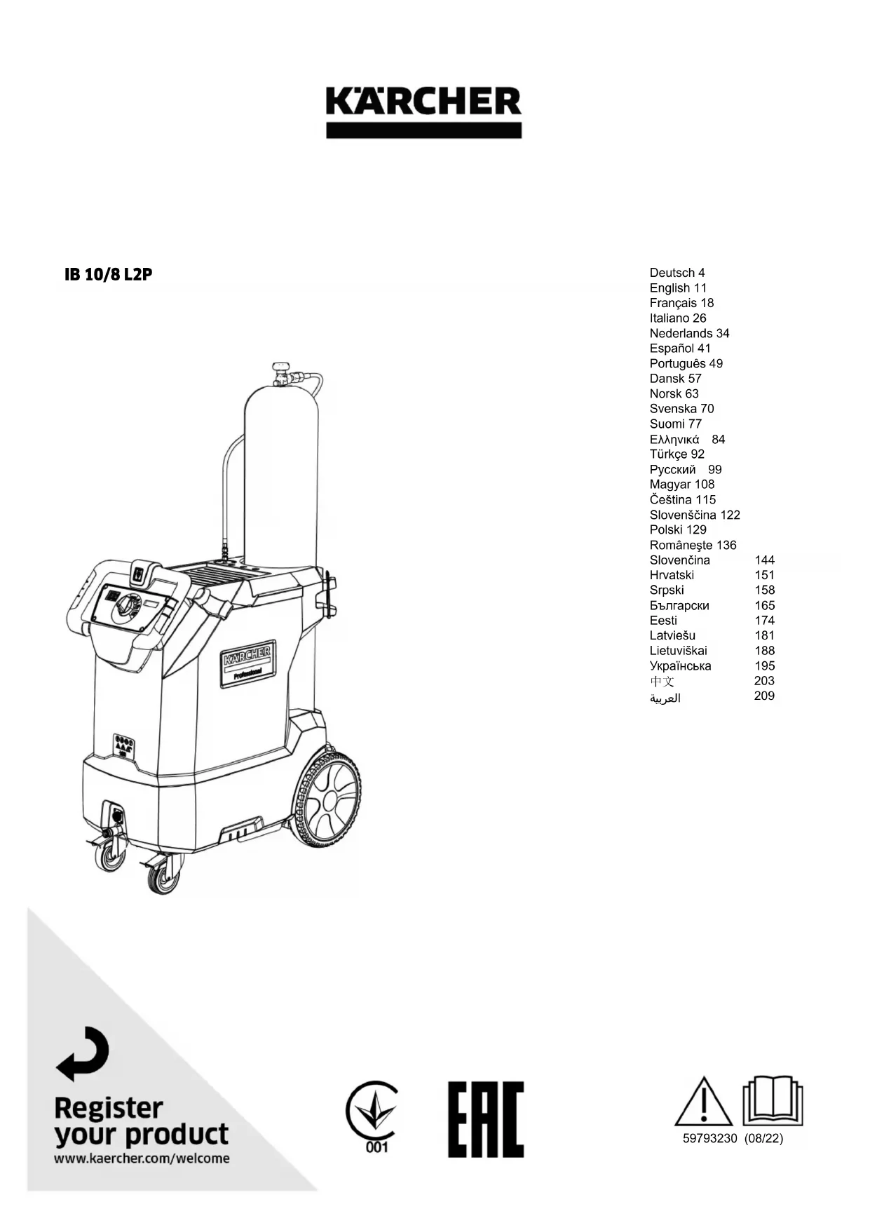 Retrouvez gratuitement la notice de l'appareil IB 108 L2P Kärcher au format PDF.