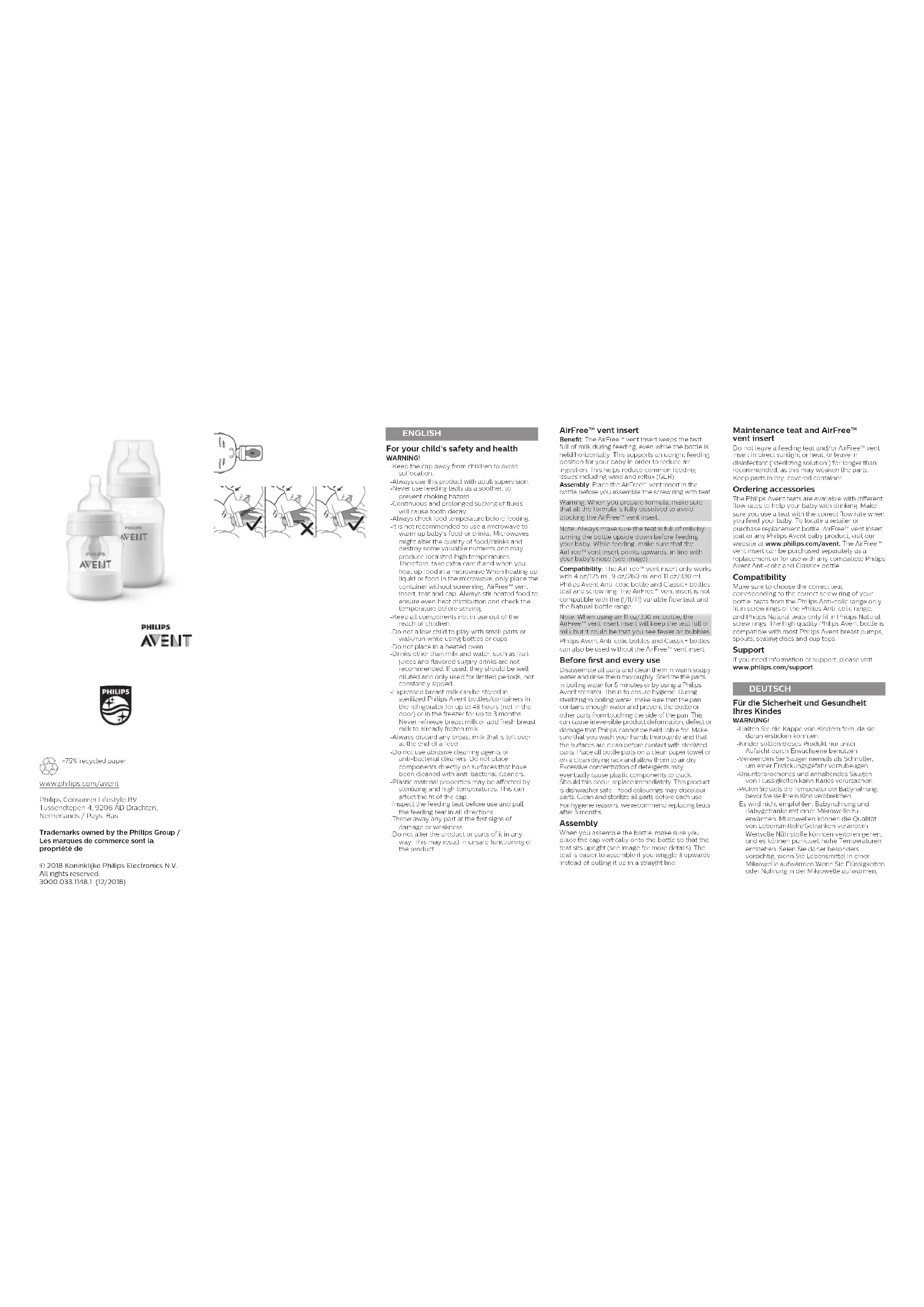 | Compatibilité | Bouteilles Philips Avent et autres bouteilles standards |