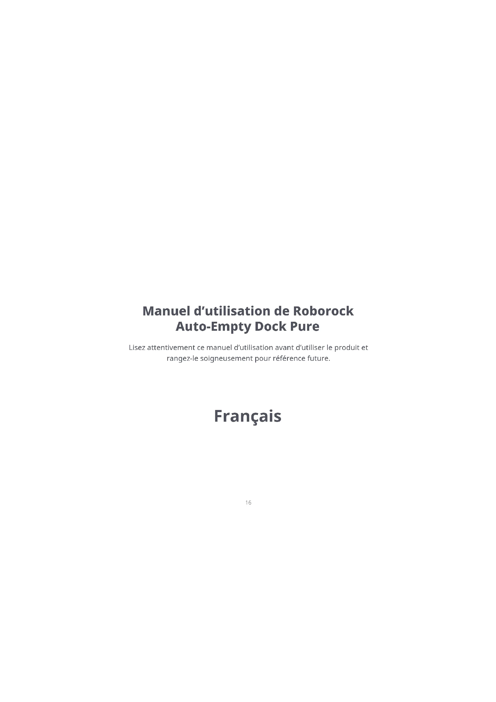 Lisez attentivement ce manuel d’utilisation avant d’utiliser le produit et rangez-le soigneusement pour référence future. Manuel d’utilisation de Roborock Auto-Empty Dock Pure Français17 Table des matières