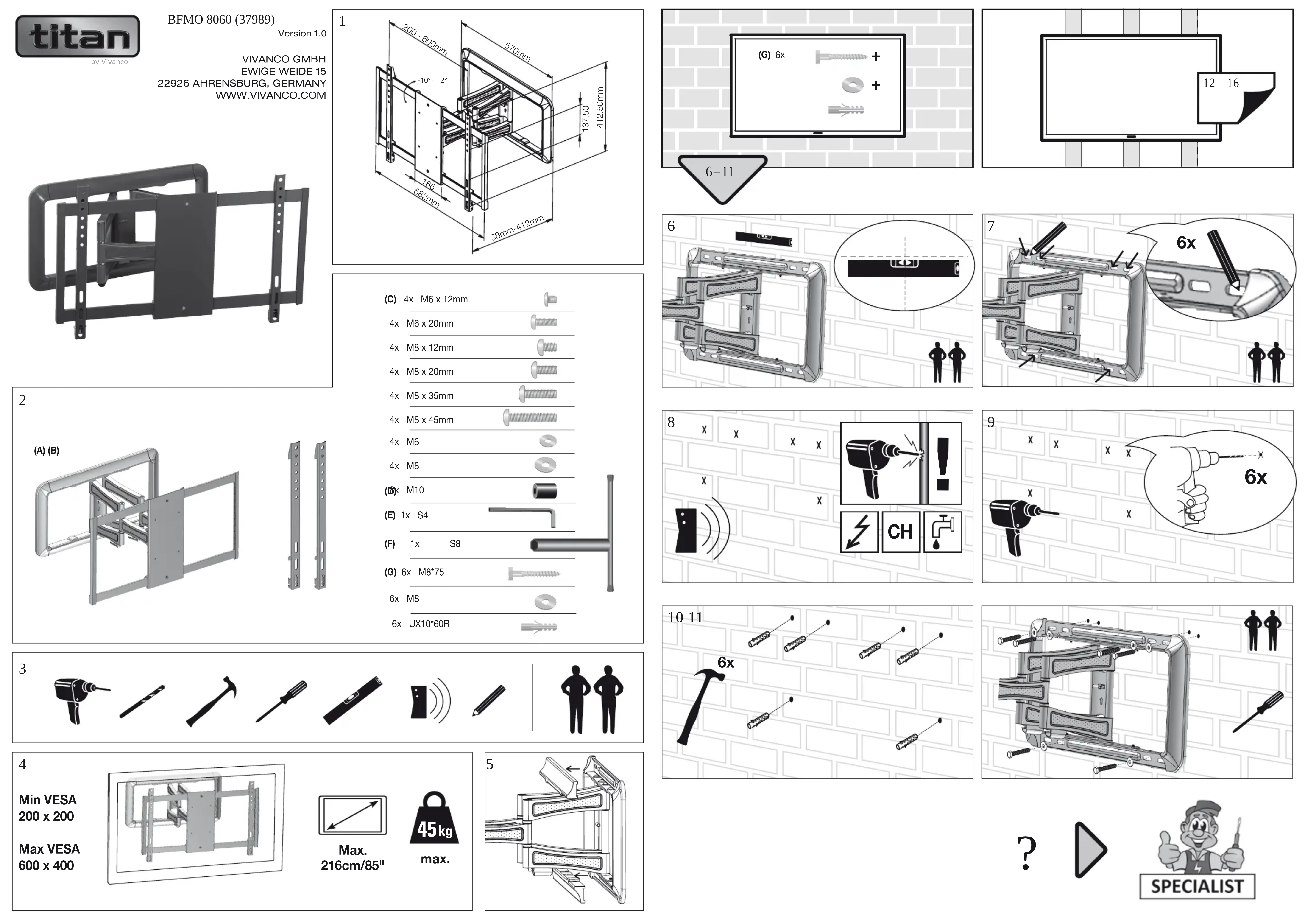 BFMO 8060 - Support mural TITAN - Notice d'utilisation et mode d'emploi gratuit