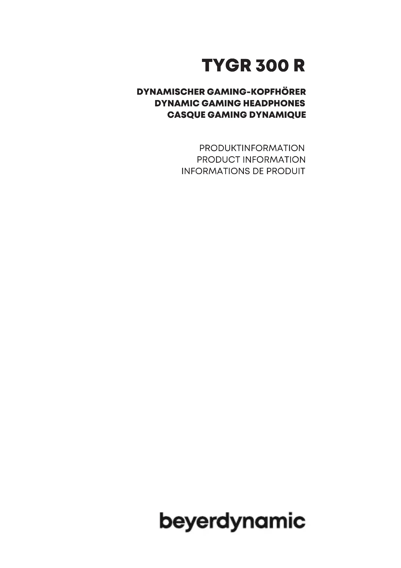 TYGR 300 R - Ecouteur BEYERDYNAMIC - Notice d'utilisation et mode d'emploi gratuit