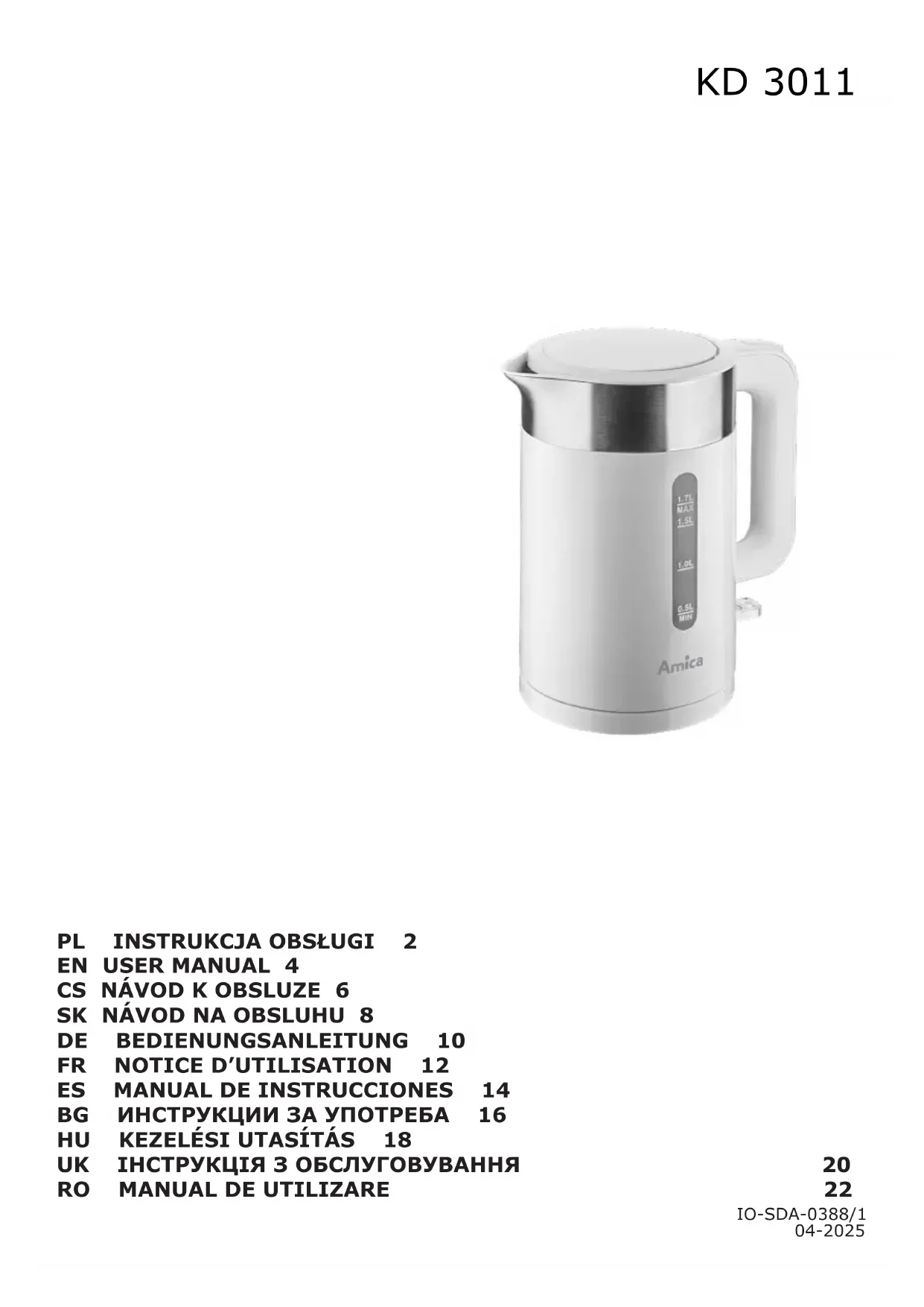 KD 3011 - Bouilloire AMICA - Notice d'utilisation et mode d'emploi gratuit