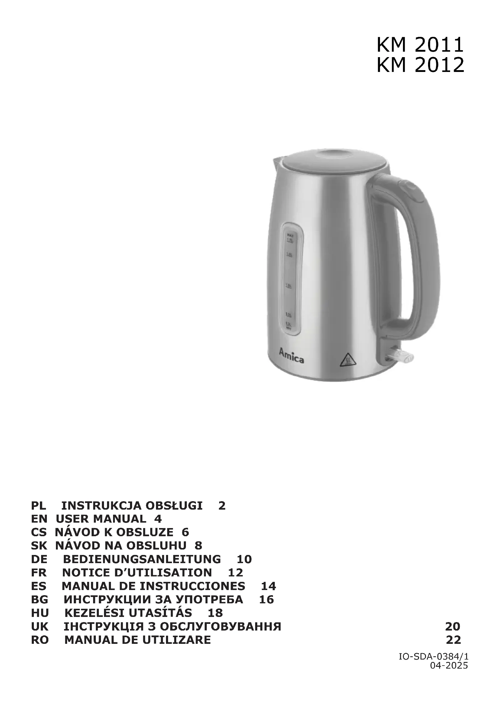 KM 2011 - Bouilloire AMICA - Notice d'utilisation et mode d'emploi gratuit