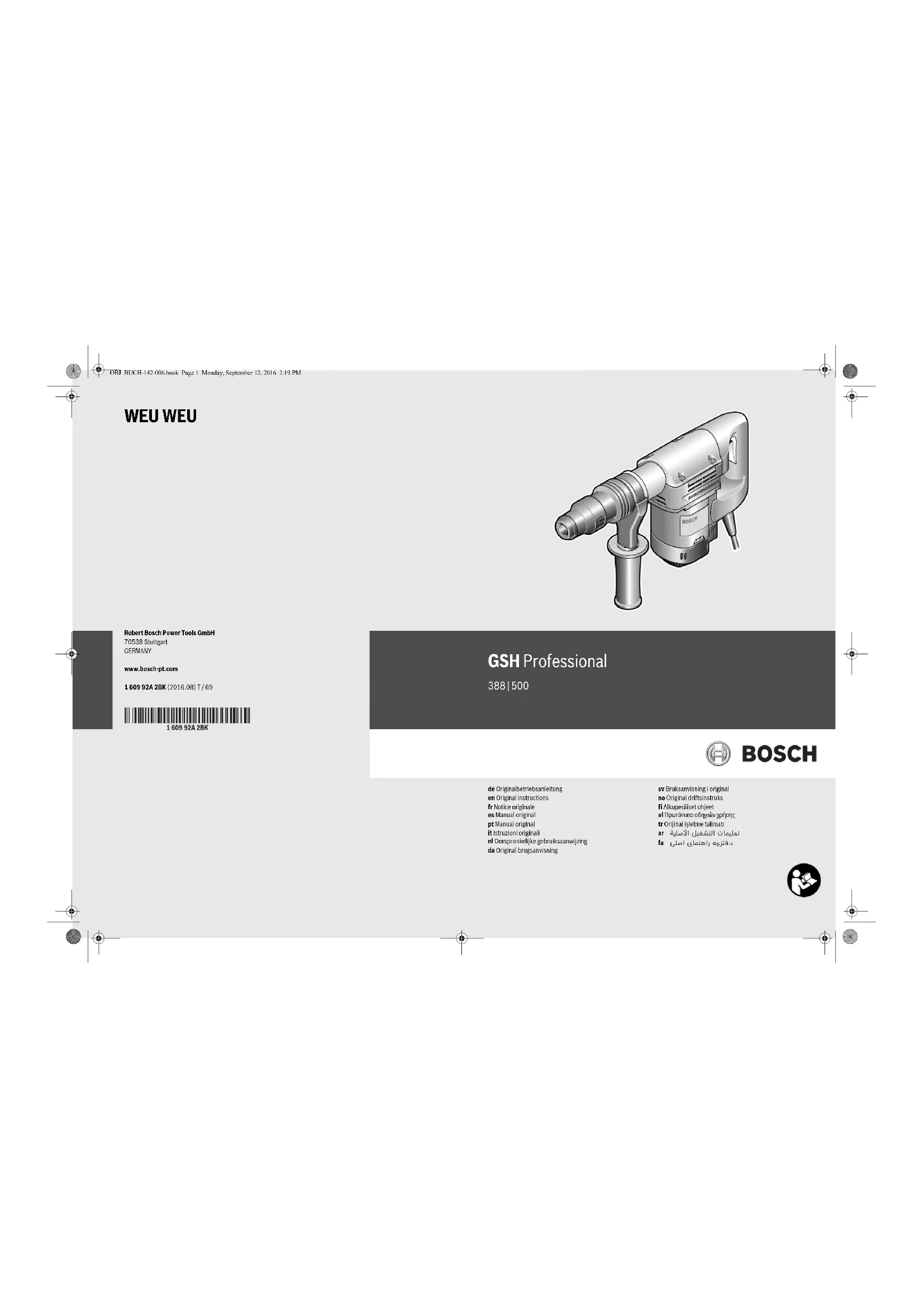 Retrouvez gratuitement la notice de l'appareil GSH 388 Professional BOSCH au format PDF.