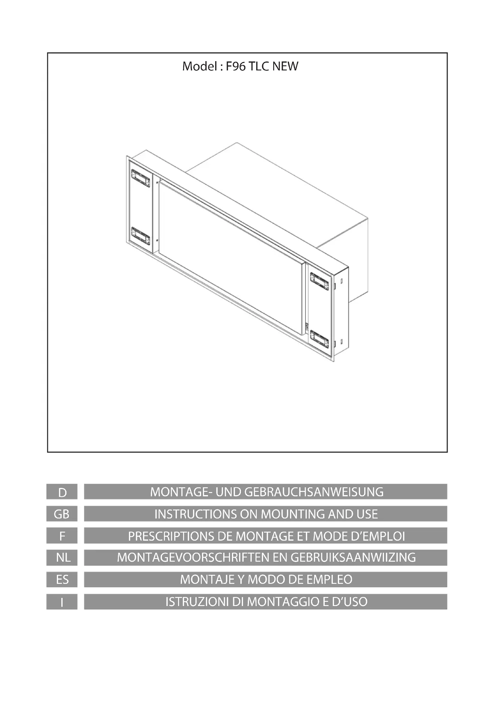 Attention ATTENTION L’appareil peut être utilisé par les enfants de moins de 8 ans et par les personnes aux capacités physiques, sensorielles ou mentales réduites, sans expérience ou sans les connaissances nécessaires, à condition qu’elles soient sous surveillance, et après avoir lu les instructions d’utilisation de l’appareil en toute sécurité, et que les utilisateurs aient conscience des dangers inhérents à l’appareil. Ne pas laisser les enfants jouer avec l’appareil. Le nettoyage et l’entretien pouvant être eectués par l’utilisateur ne doivent pas être exécutés par les enfants sans surveillance. Ne jamais utiliser la hotte avant que la grille ne soit correctement montée ! Les parties accessibles peuvent atteindre de hautes températures lors de l’utilisation de la table de cuisson. L’air ne doit pas être évacué dans un conduit d’évacuation de fumées produites par des appareils à combustion de gaz ou d’autres combustibles. Une aération appropriée de la pièce doit toujours être prévue lorsque la hotte aspirante est utilisée simultanément à d’autres appareils utilisant du gaz ou d’autres combustibles. Il est strictement interdit de amber des aliments sous la hotte. L’utilisation de amme nue risque d’endommager les ltres et peut provoquer des incendies : elle doit donc toujours être évitée. Les fritures doivent être eectuées sous contrôle an d’éviter que l’huile surchauée s’enamme. Respectez rigoureusement les prescriptions des règlements des autorités locales compétentes quant aux consignes techniques et de sécurité à adopter pour l’évacuation des fumées. Cet appareil est labellisé conformément à la Directive Européenne 2002/96/EC, Waste Electrical and Electronic Equipment (WEEE). En veillant à ce que ce produit soit détruit en bonne et due forme, l’utilisateur contribue à prévenir les éventuelles conséquences négatives sur l’environnement et la santé. Le symbole présent sur l’appareil ou sur la documentation qui l’accompagne indique que ce produit ne peut en aucun cas être traité comme déchet ménager. Il doit par conséquent être remis à un centre de collecte des déchets chargé du recyclage des équipements électriques et électroniques.Pour la mise au rebut, respectez les normes relatives à l’élimination des déchets en vigueur dans le pays d’installation.Pour obtenir de plus amples détails au sujet du traitement, de la récupération et du recyclage de cet appareil, veuillez vous adresser au bureau compétent de votre commune, à la société de collecte des déchets ou directement à votre revendeur.Si le câble d’alimentation est endommagé, il devra être remplacé par le fabricant ou par son service d’assistance technique ou, dans tous les cas, par une personne ayant une qualication similaire, an de prévenir tout risque éventuel.27 ATTENTION F Veuillez consulter les schémas des premières pages avec les références alphabétiques et numériques indiquées dans les instructions. Respectez rigoureusement les instructions indiquées dans ce manuel. Nous déclinons toute responsabilité en cas de problème, dommage ou incendie provoqués à l’appareil dérivant du non-respect des instructions indiquées dans ce manuel. Si vous possédez un plan de cuisson entièrement électrique, la hotte doit être installée a une distance de 65 cm , de 65 cm dans le cas d’un plan de cuisson mixte ou a gaz. Si les instructions d’installation du dispositif de cuisson au gaz spécient une plus grande distance, il faut en tenir compte. La hotte est livrée avec une sortie d’air supérieure B pour l’évacuation des fumées vers l’extérieur (Version aspirante A- tube d’évacuation non compris). S’il est impossible d’évacuer les fumées et vapeurs de cuisson vers l’extérieur vous devez utiliser la hotte en version ltrante F en montant 1 ltre à charbons actifs F, les fumées et vapeurs seront recyclées et évacuées par la grille supérieure G. Assurez-vous qu’un point d’accès au réseau d’alimentation électrique est présent à proximité de la hotte et que l’installation est équipée d’un interrupteur diérentiel de 30 mA. La tension de réseau doit correspondre à la tension indiquée sur l’étiquette des caractéristiques située à l’intérieur de la hotte. La hotte est équipée d’un câble électrique d’une longueur de 1250 mm avec ou sans che : si la che est présente, branchez la hotte à une prise conforme aux normes en vigueur et accessible, si la che est absente (branchement direct au réseau), appliquez un interrupteur bipolaire aux normes avec distance des contacts en ouverture non inférieure à 3 mm (accessible), cette installation et le branchement doivent être réalisés aux normes par un technicien spécialisé. Tests sur les performances du produit réalisés conformément au règlement (EU) N° 65/2014 - Réf. : CEI 61591 On obtient le maximum des performances en positionnant les panneaux mobiles, s’ils sont présents, en position ouverte.28 TLC F ENTRETIEN 1: + motor 2: On/O motor 3: - motor 4: On/O light 5: Led Remarque : la LED sur la hotte indique les diérentes vitesses : vert 1ère vitesse, orange 2ème vitesse, rouge 3ème vitesse et rouge clignotant 4ème vitesse. La dernière vitesse est temporisée sur toutes les hottes ayant un débit supérieur à 650 m3/h ; elle a une durée de sept minutes après quoi on revient automatiquement à la dernière vitesse non temporisée. Procédure d’aliation :