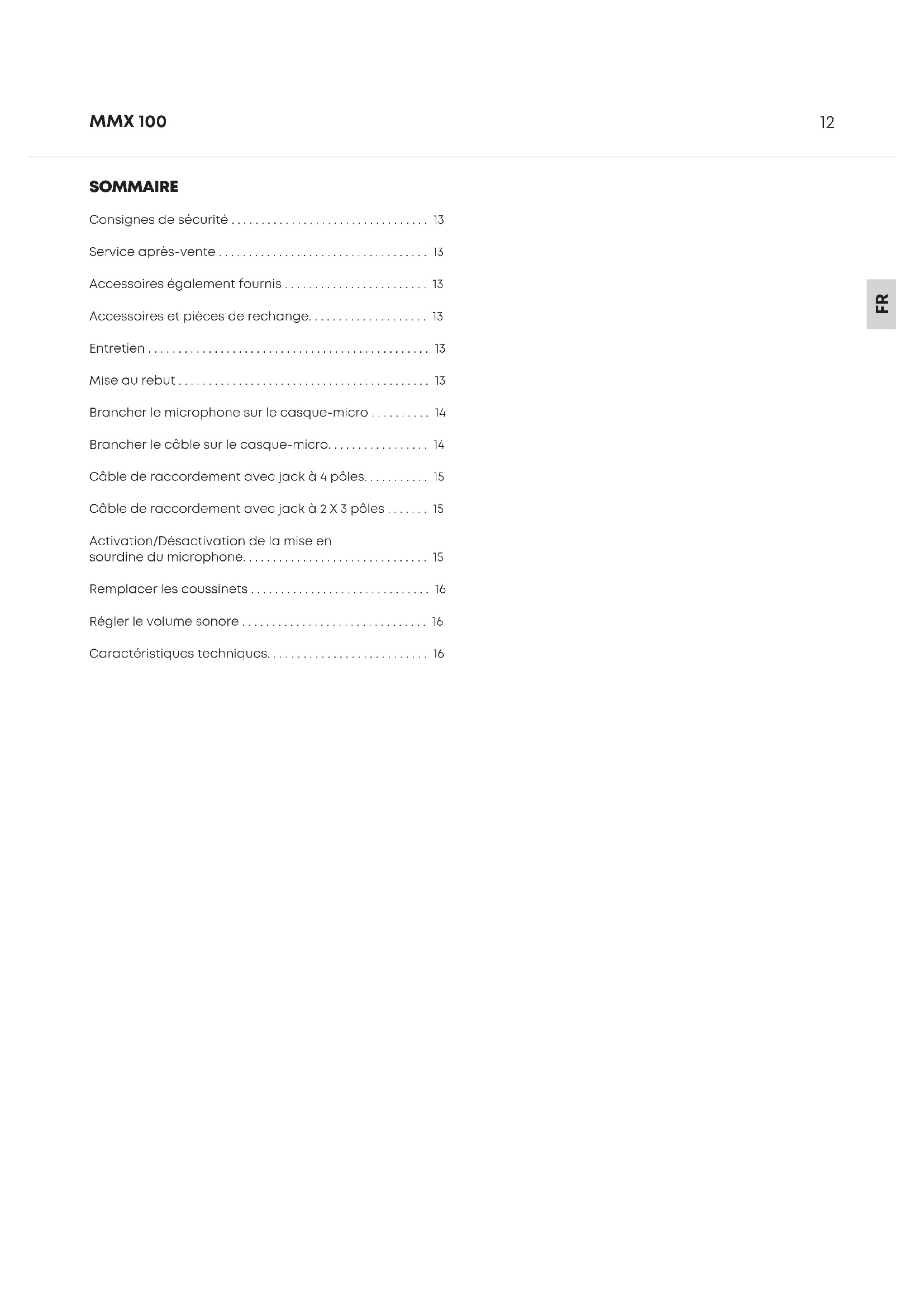 - Accessoires et pièces de rechange p. 13