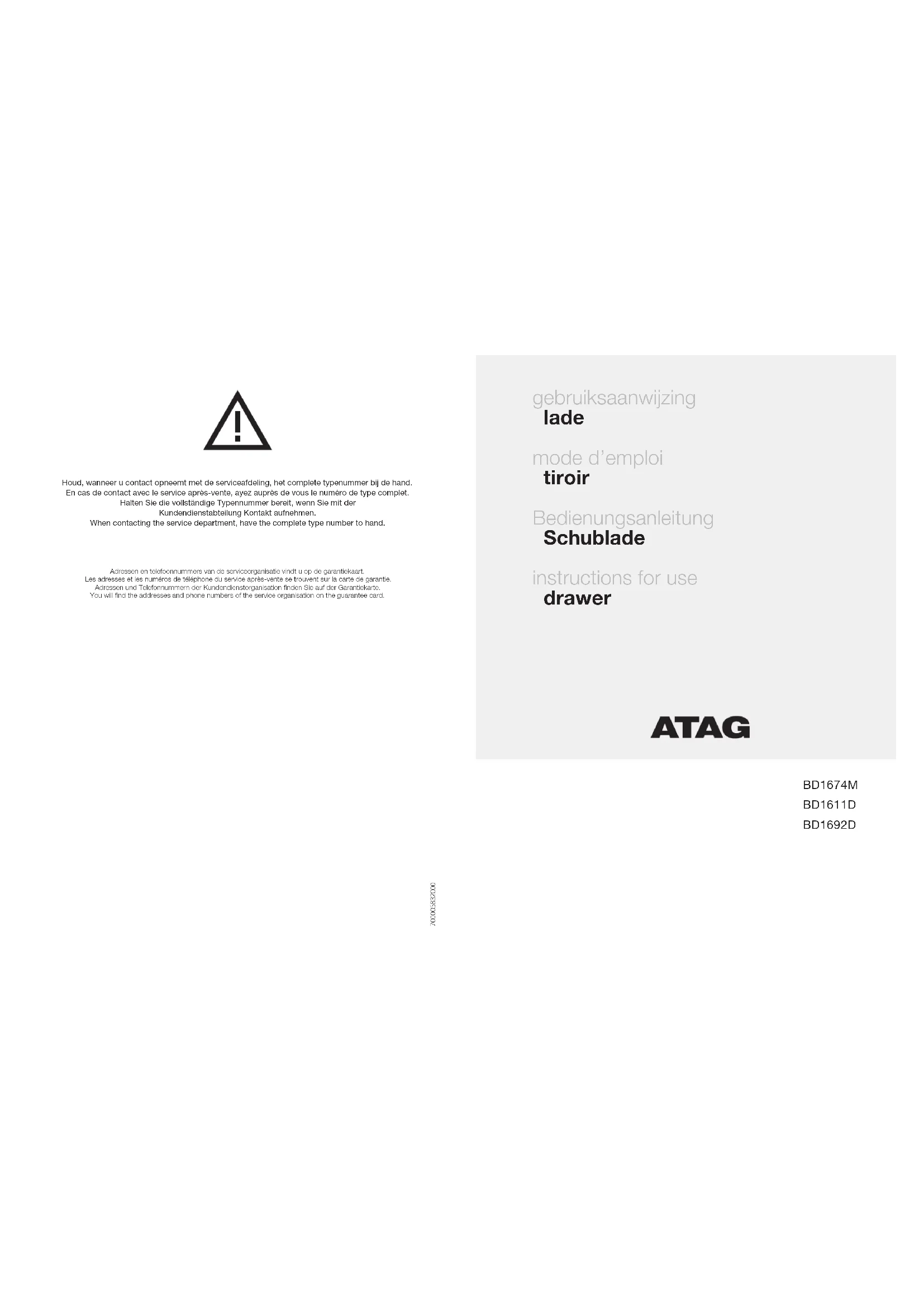 Retrouvez gratuitement la notice de l'appareil BD1674M Atag au format PDF.