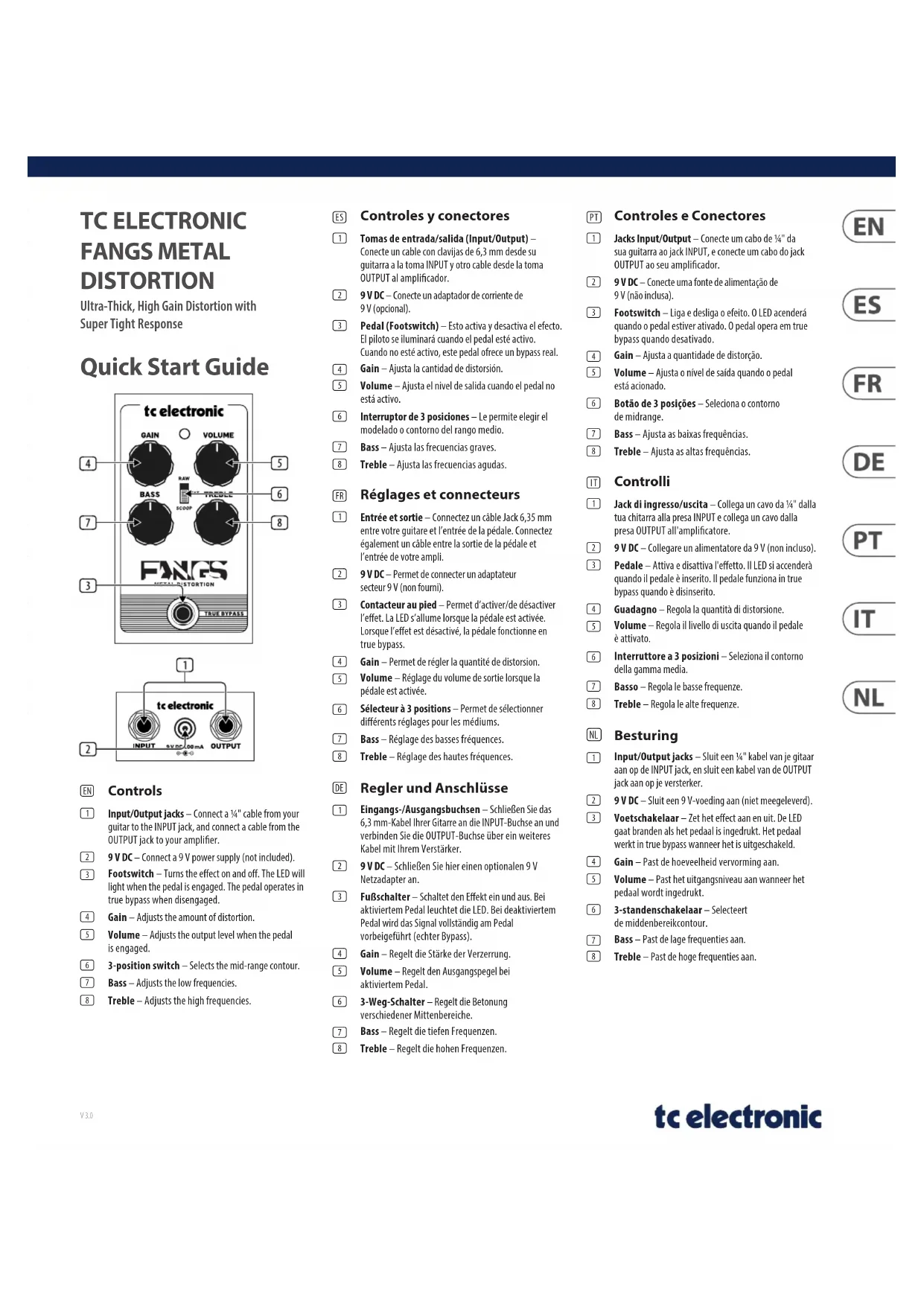 Fangs Metal Distortion - Pédale d'effet guitare TC ELECTRONIC - Notice d'utilisation et mode d'emploi gratuit