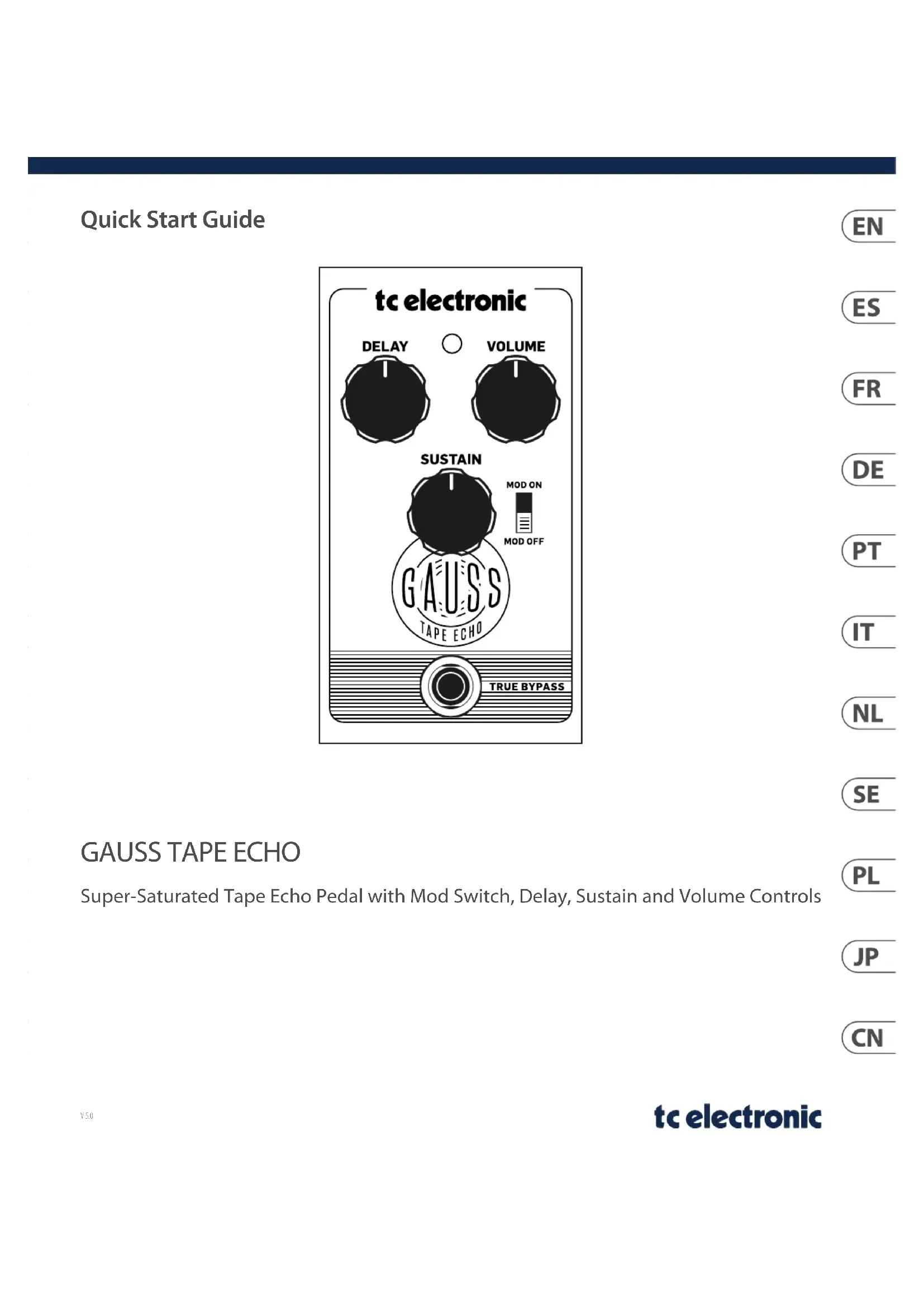 Gauss Tape Echo - Pédale d'effet audio TC ELECTRONIC - Notice d'utilisation et mode d'emploi gratuit