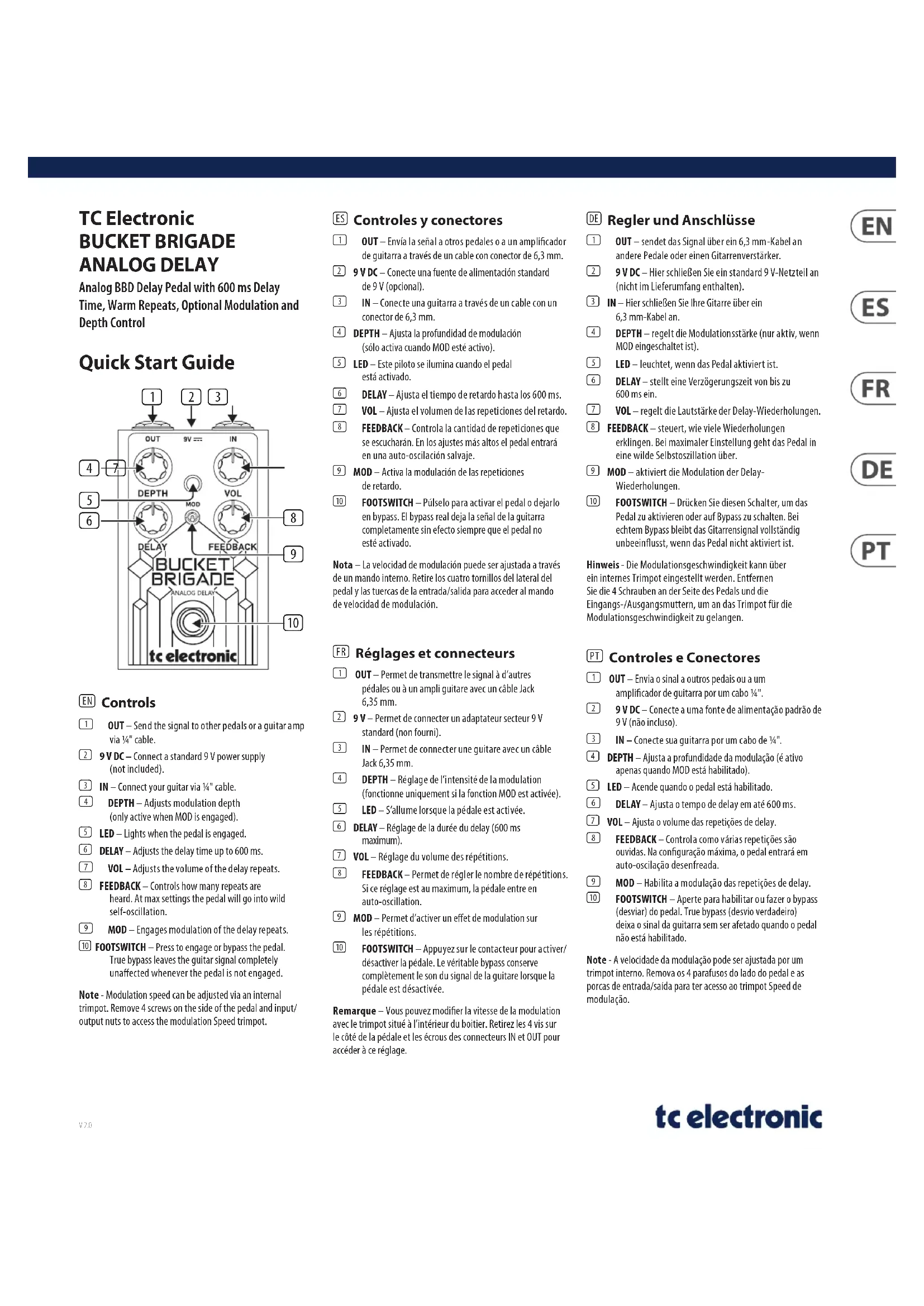 Bucket Brigade Analog Delay - Pédale d'effet guitare TC ELECTRONIC - Notice d'utilisation et mode d'emploi gratuit