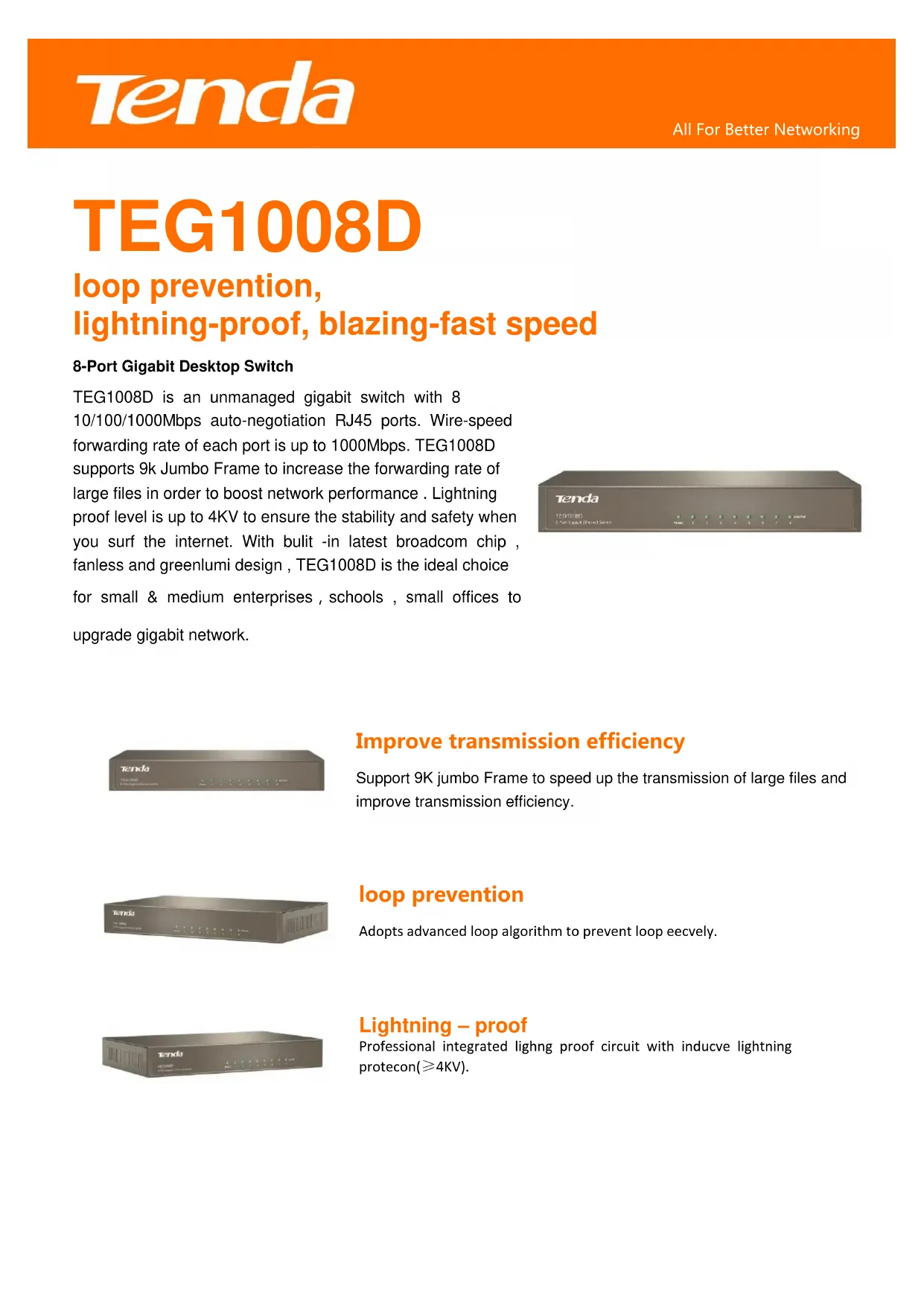 TEG1008D - Commutateur Tenda - Notice d'utilisation et mode d'emploi gratuit