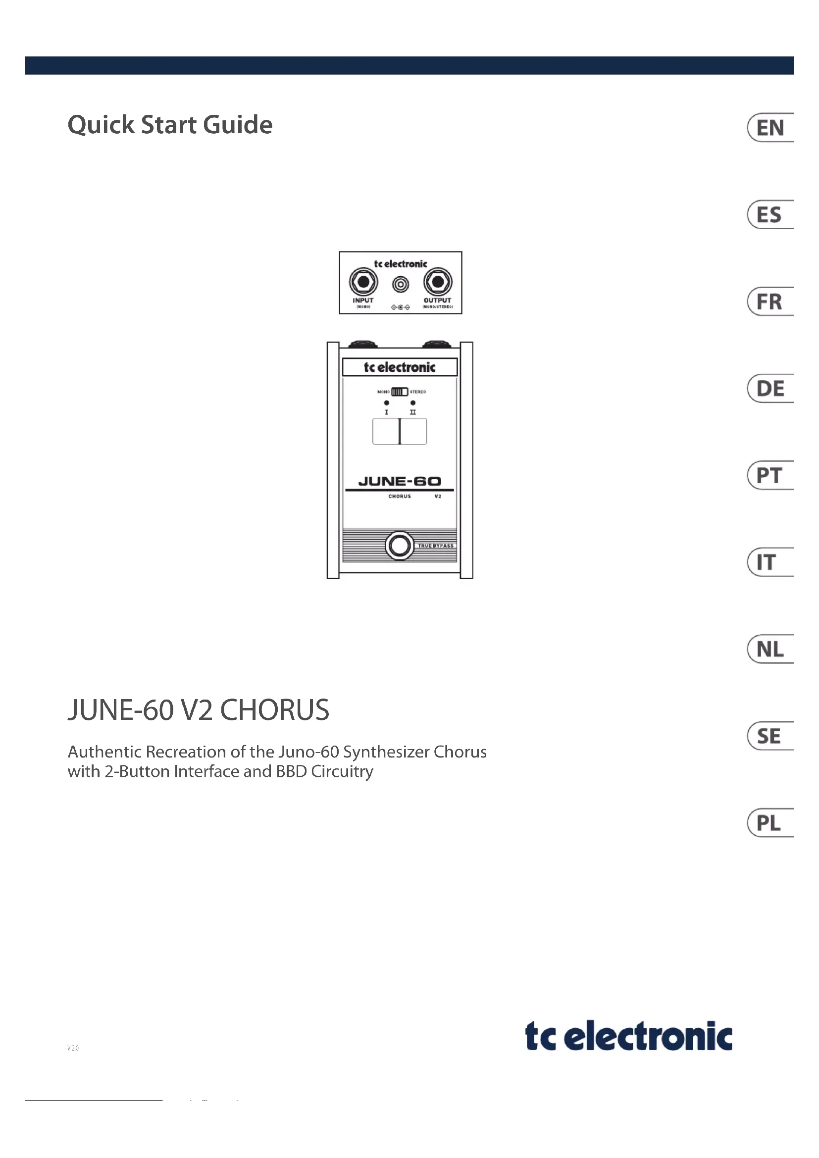JUNE60 - Pédale d'effet audio TC ELECTRONIC - Notice d'utilisation et mode d'emploi gratuit