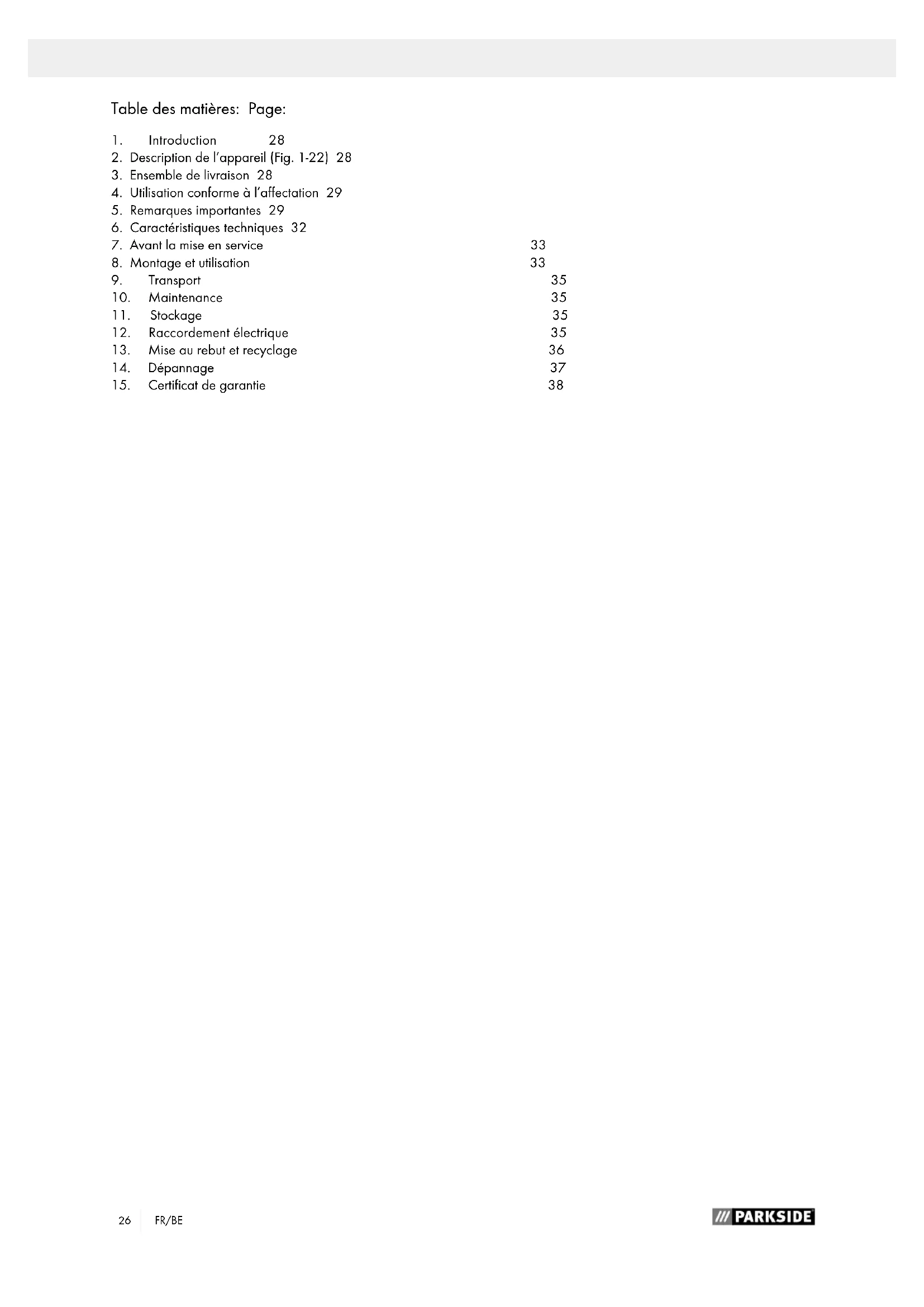 - Conservez si possible l’emballage jusqu’à la fin de la période de garantie.29 FR/BE ATTENTION L’appareil et les matériaux d’emballage ne sont pas des jouets ! Les enfants ne doivent en aucun cas jouer avec les sacs en plastique, films d’emballage et pièces de petite taille ! Il y a un risque d’ingestion et d’as- phyxie!