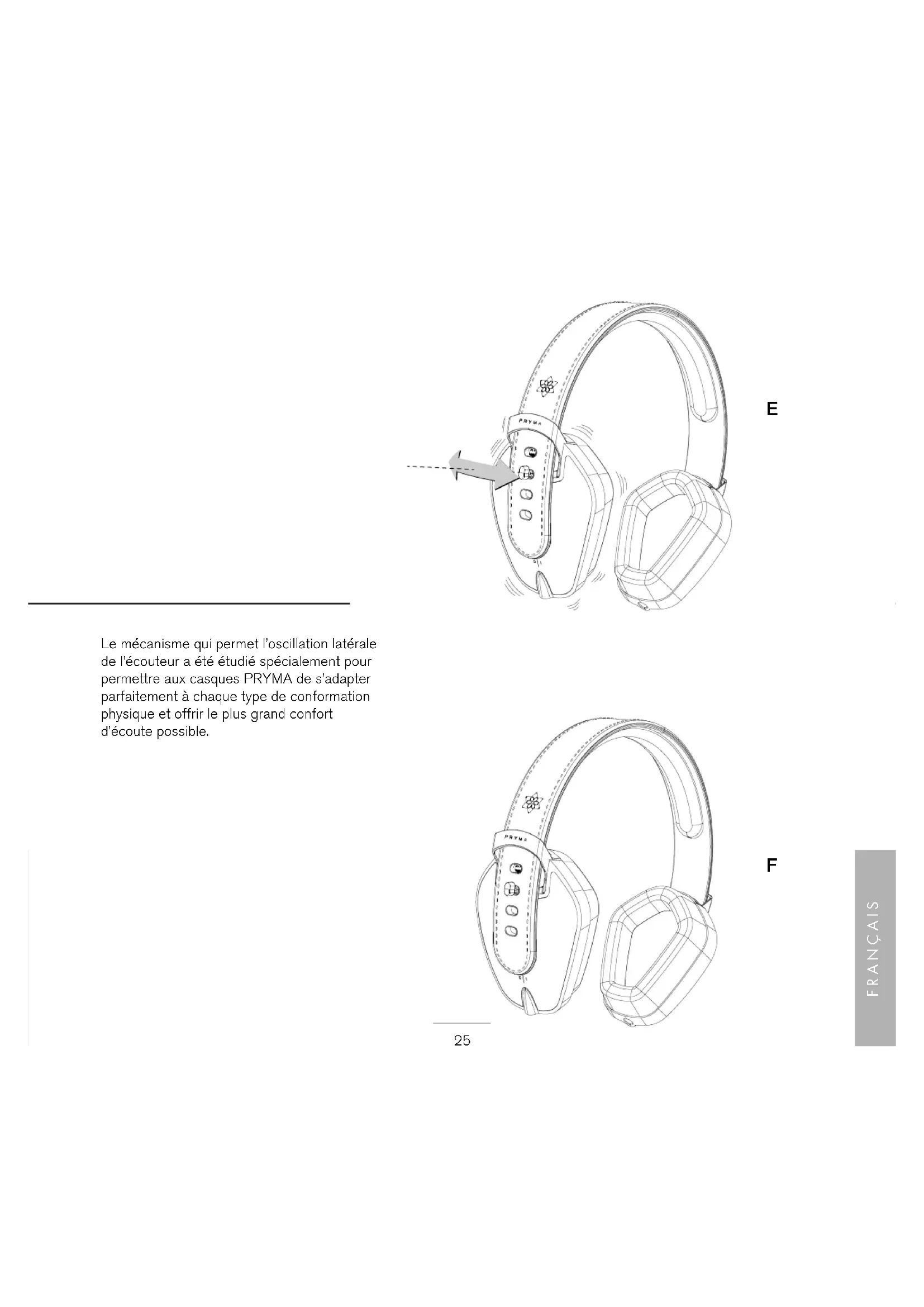 Le mécanisme qui permet l’oscillation latérale de l’écouteur a été étudié spécialement pour permettre aux casques PRYMA de s’adapter parfaitement à chaque type de conformation physique et offrir le plus grand confort d’écoute possible.26