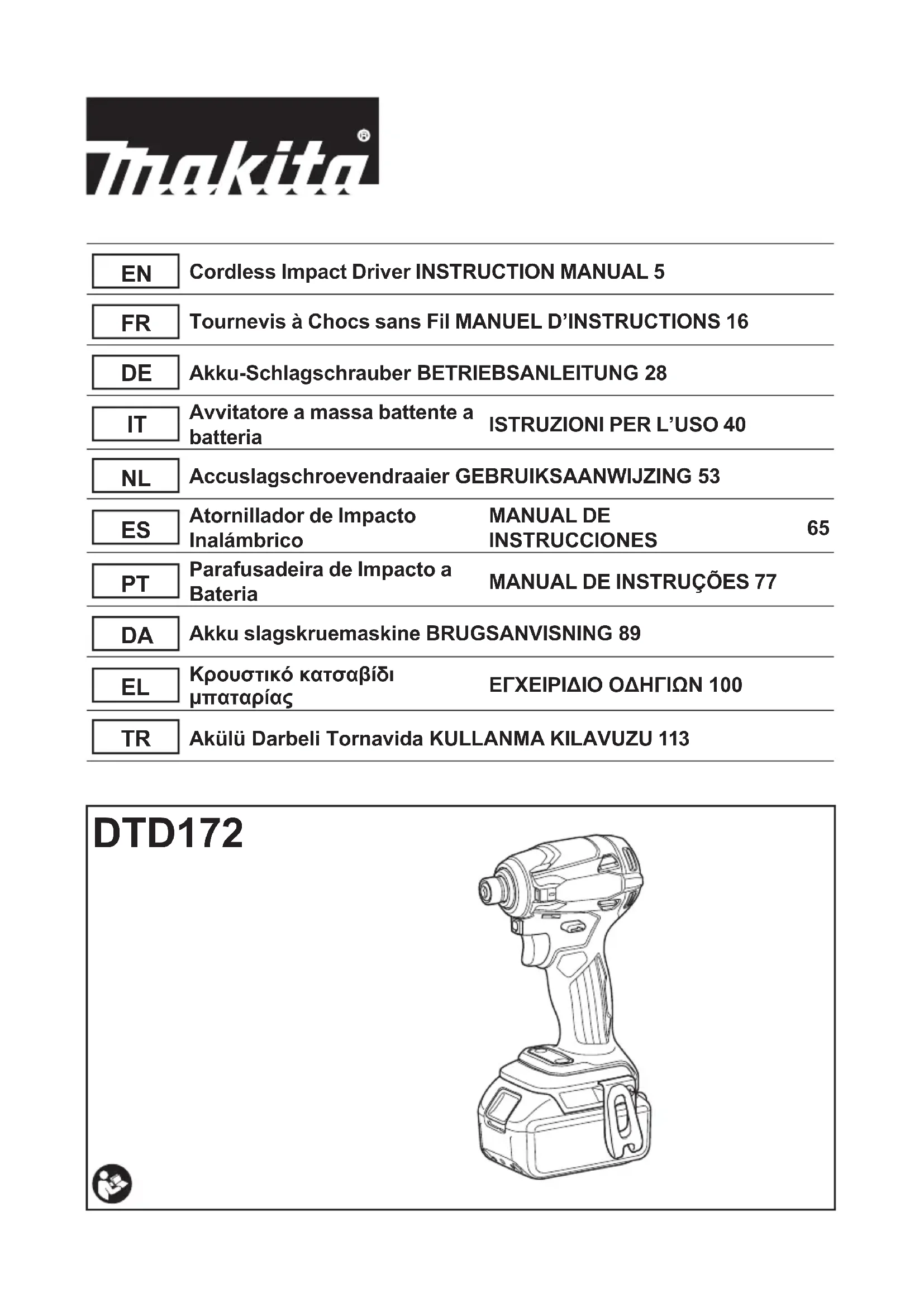 Retrouvez gratuitement la notice de l'appareil DTD172Z MAKITA au format PDF.