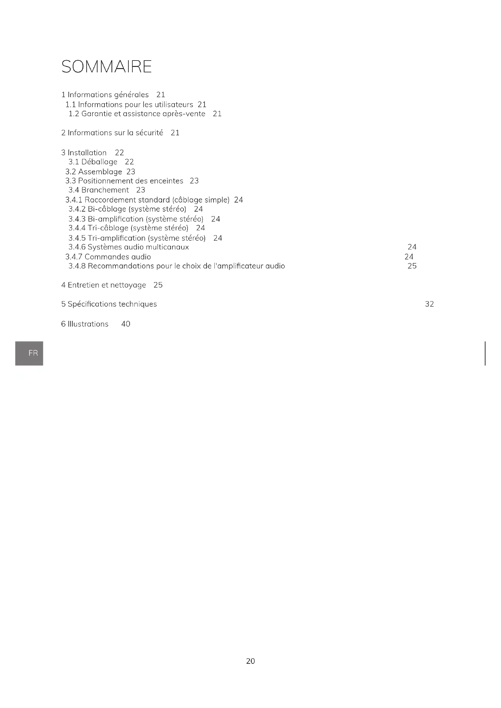 Laconceptionetlaréalisationdesenceintessontélaboréesselondesstandardsdefabricationdetrèshautde gamme.Sitoutefoisundéfautouundysfonctionnementdevaitseproduire,touslesproduitsSonusFabersont couvertsparuneGarantieStandardquicouvrelesdéfautset/oulesincohérencesmatérielles,techniquesetde fabricationpendantdeux(2)ansàcompterdeladated’achatparlepropriétaireinitial. SachezquevouspouvezprolongerlapériodedeGarantieenenregistrantvotreproduitsur: https://www.sonusfaber.com/en/register-product/. ConsultezlapolitiquedeGarantiecomplètesurwww.sonusfaber.com/warranty-policy. Pourvotreconfort,ilestégalementrecommandédegarderlesélémentssuivantsàl’esprit: