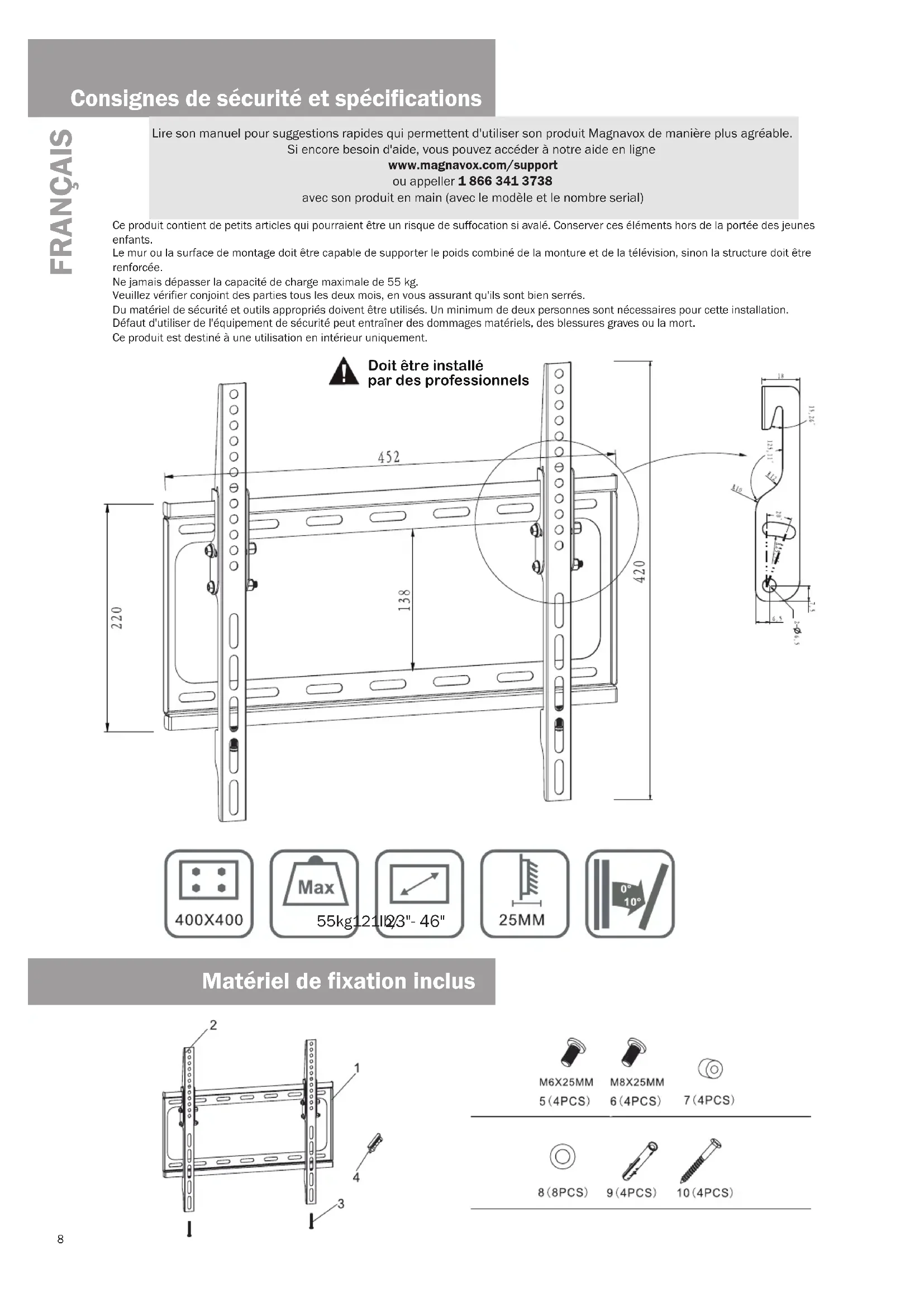 MT00521 - Support mural MAGNAVOX - Notice d'utilisation et mode d'emploi gratuit