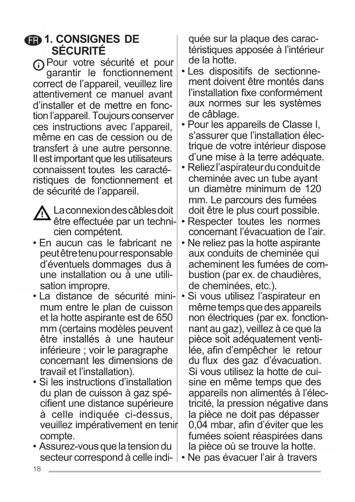 - Ne pas évacuer l’air à travers FR19 une conduite utilisée pour l’évacuation des fumées des appareils de combustion ali- mentés au gaz ou avec d’autres combustibles.