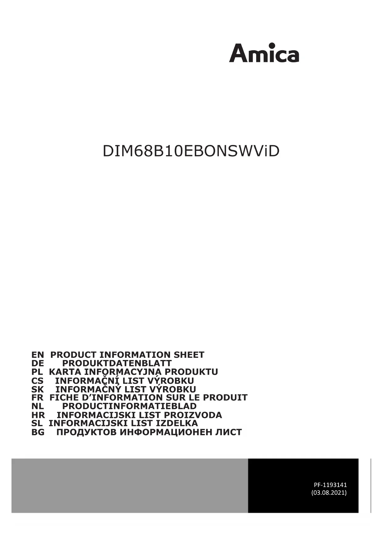Retrouvez gratuitement la notice de l'appareil DIM68B10EBONSWViD AMICA au format PDF.