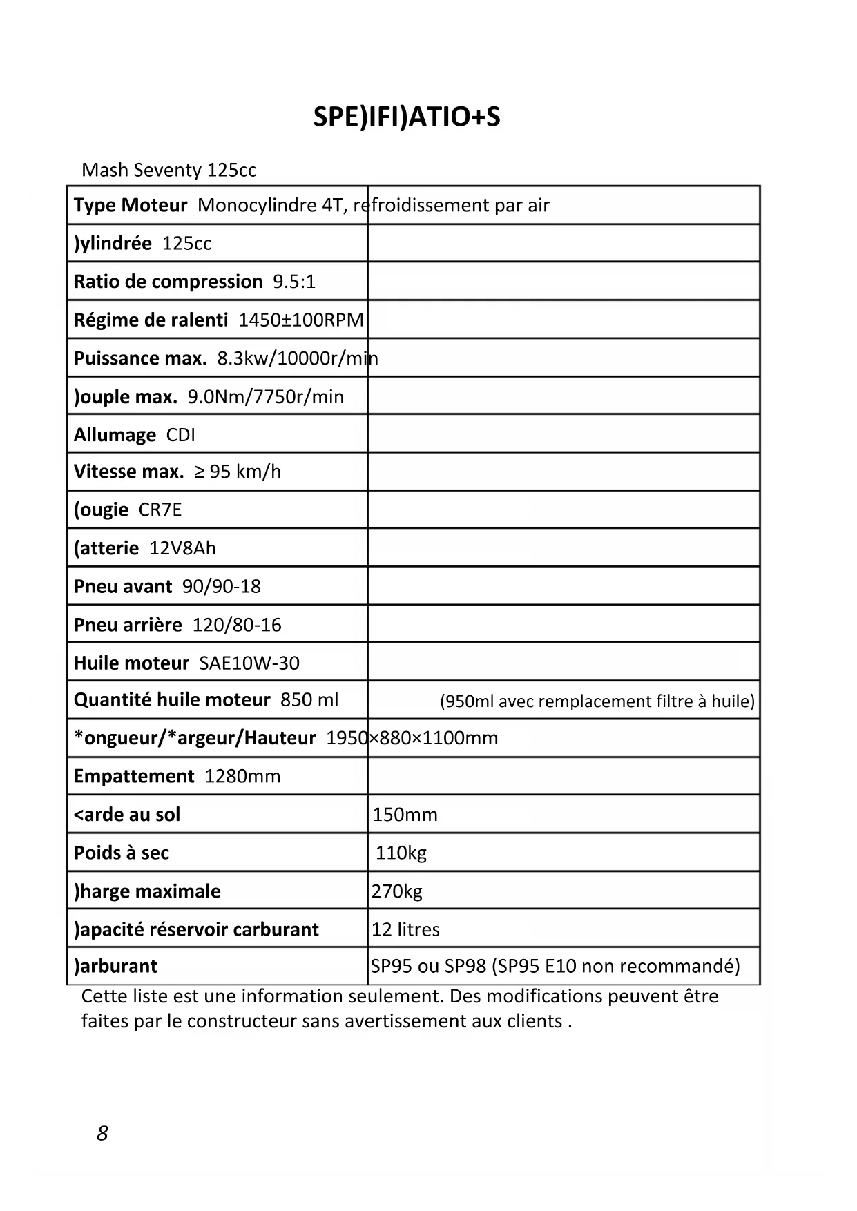Note 7: Les modèles MASH Seventy et MASH Scrambler sont équipés d'un frein arrière à tambour.