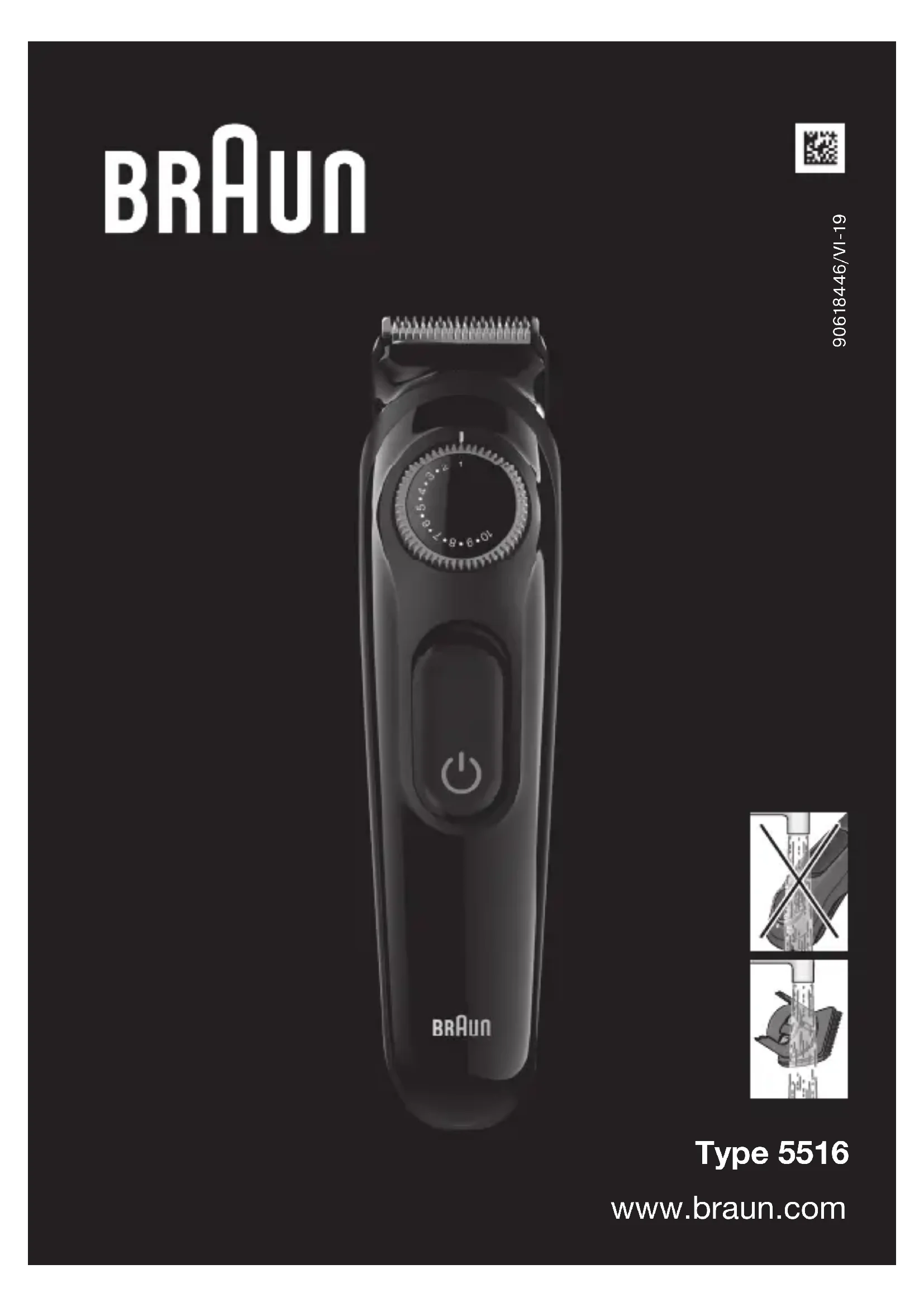 - Pour préserver le bon fonctionnement de la tondeuse, appliquez régulièrement quelques gouttes d’huile de machine légère (non fournie). Note environnementale Ce produit contient des piles et/ou des déchets électriques recyclables. Pour la protection de l’environnement, ne pas jeter avec les ordures ménagères, mais les porter dans les points de recyclage de déchets électriques disponibles dans votre pays. Sujet à des modifications sans préavis. Garantie Nous accordons une garantie de 2 ans sur ce produit, à partir de la date d’achat. Pendant la durée de la garantie, Braun prendra gratuitement à sa charge la réparation des vices de fabrication ou de matière en se réservant le droit de décider si certaines pièces doivent être réparées ou si l’appareil lui-même doit être échangé. En fonction de la disponibilité, le remplacement peut se faire dans une couleur différente ou au moyen d’un modèle équivalent. Cette garantie s’étend à tous les pays où cet appareil est commercialisé par Braun ou son distributeur exclusif. Cette garantie ne couvre pas : les dommages occasionnés par une utilisation inadéquate, l’usure normale (par exemple, grille et bloc-couteaux) ainsi que les défauts d’usures qui ont un effet négligeable sur la valeur ou l’utilisation de l’appareil. Cette garantie devient caduque si des réparations ont été effectuées par des personnes non agréées par Braun et si des pièces de rechange ne provenant pas de Braun ont été utilisées. Pour toute réclamation intervenant pendant la période de garantie, retournez ou rapportez l’appareil ainsi que l’attestation de garantie à votre revendeur ou à un Centre Service Agréé Braun. Veuillez vous référer à www.service.braun.com ou appeler le 0 800 944 802 (service consommateurs – service & appel gratuits) pour connaître le Centre Service Agréé Braun le plus proche de chez vous. Clause spéciale pour la France Outre la garantie contractuelle exposée ci-dessus, nos clients bénéficient de la garantie légale des vices caches prévue aux articles 1641 et suivants du Code civil. 90618446_Type5516_BT_3222_3221_3220_MN_ANZ.indd 1690618446_Type5516_BT_3222_3221_3220_MN_ANZ.indd 16 17.06.19 13:4217.06.19 13:42 Business Use - P&G AUTHORIZED POA-00141023 Rev 001 Effective Date 2019-06-24 Printed 2022-01-12 Page 16 of 4417 Español Lee estas instrucciones completas, contienen información para tu seguridad. Guárdalas para futuras consultas. Precaución La máquina está provista de un cable de alimentación especial con fuente de alimentación VSEB (voltaje de seguridad extra bajo). No intercambies ni manipules ninguna pieza. De lo contrario, hay riesgo de descarga eléctrica. Para la recarga, utilizar únicamente la fuente de alimentación suministrada. Los dígitos de este símbolo xxxx de la empuñadura deben coincidir con los dígitos de la fuente de alimentación. No uses nunca el aparato si algún accesorio está dañado, como las recortadoras, los peines o el set de cable especial. Mantenga seco el aparato. No abrir el aparato. Este aparato puede ser utilizado por niños a partir de los 8 años y personas con capacidades físicas, sensoriales o mentales reducidas o con falta de experiencia y conoci- miento, si lo hacen bajo supervisión o si se les ha dado instrucciones adecuadas para el uso seguro del aparato y entienden los riesgos que implica. Los niños no deben jugar con el aparato. Los niños no deben realizar la limpieza ni el mantenimiento del aparato. Descripción 1 Peine de precisión para barba y cabello corto 2 Cabezal recortador 3 Selector de longitud 4 Interruptor de encendido/apagado 5 Toma de corriente 6 Cable de alimentación especial 7 Indicador de carga Para ver las especificaciones eléctricas, lee el texto impreso en el cable de alimentación especial. 90618446_Type5516_BT_3222_3221_3220_MN_ANZ.indd 1790618446_Type5516_BT_3222_3221_3220_MN_ANZ.indd 17 17.06.19 13:4217.06.19 13:42 Business Use - P&G AUTHORIZED POA-00141023 Rev 001 Effective Date 2019-06-24 Printed 2022-01-12 Page 17 of 4418 Carga La temperatura ambiente recomendada durante la carga es de 5 °C a 35 °C. Si la temperatura es demasiado alta o baja, puede que la batería no se cargue correctamente o no se cargue en absoluto. La temperatura ambiente recomendada para recortar va de 15 °C a 35 °C. No expongas el aparato a temperaturas superiores de 50 °C durante largos periodos de tiempo.