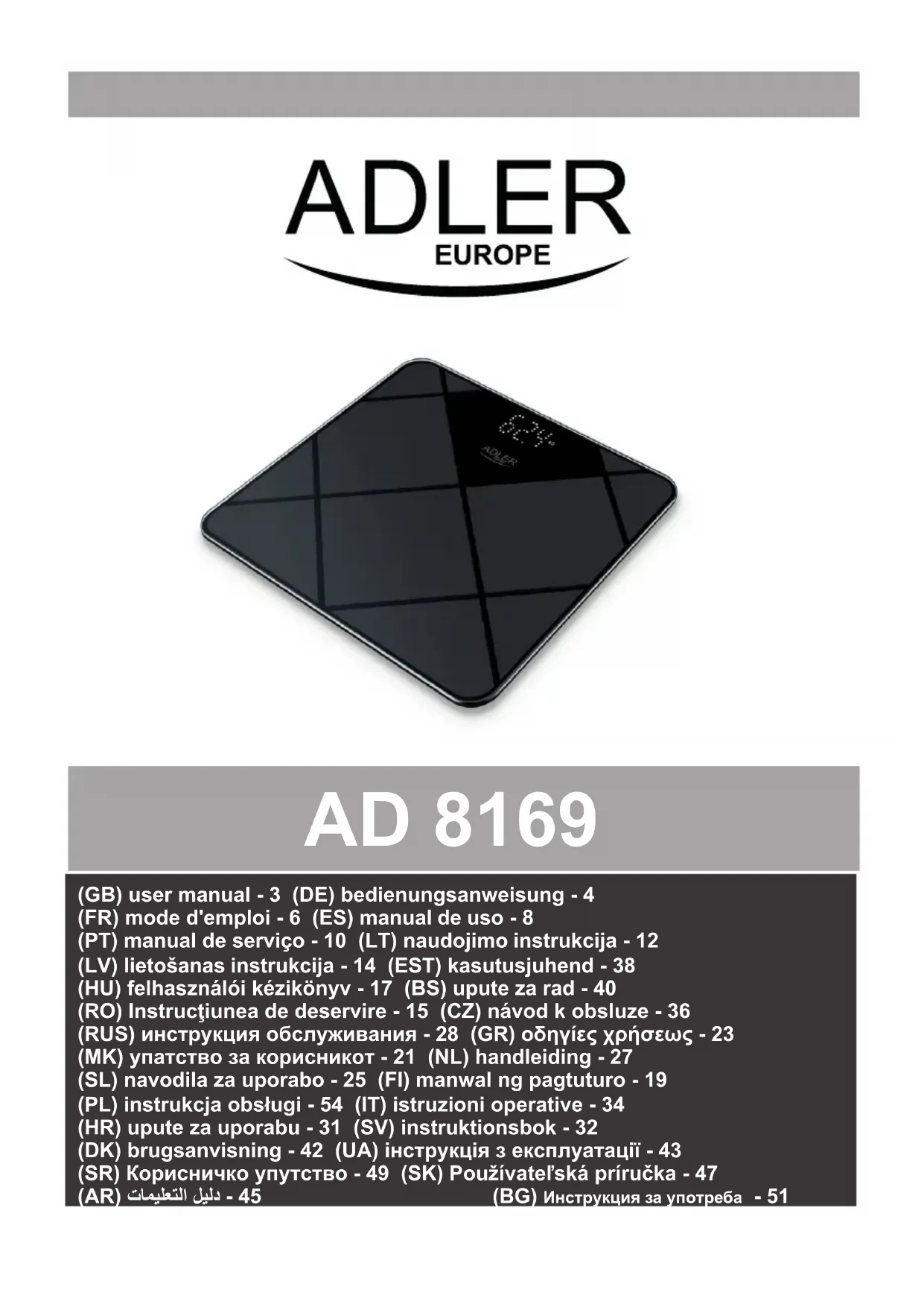 Retrouvez gratuitement la notice de l'appareil AD 8169 ADLER au format PDF.