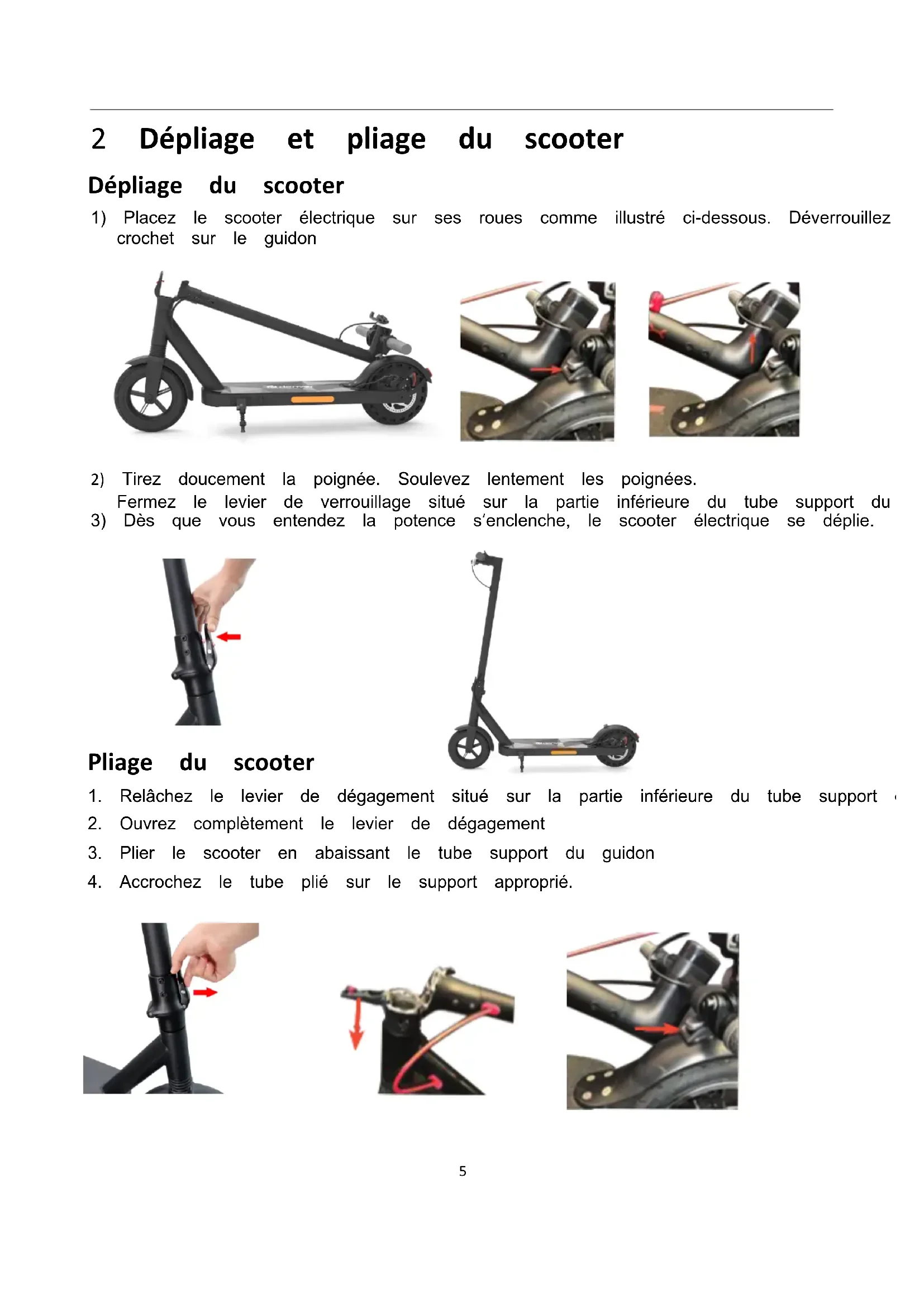 - Plier le scooter en abaissant le tube support du guidon