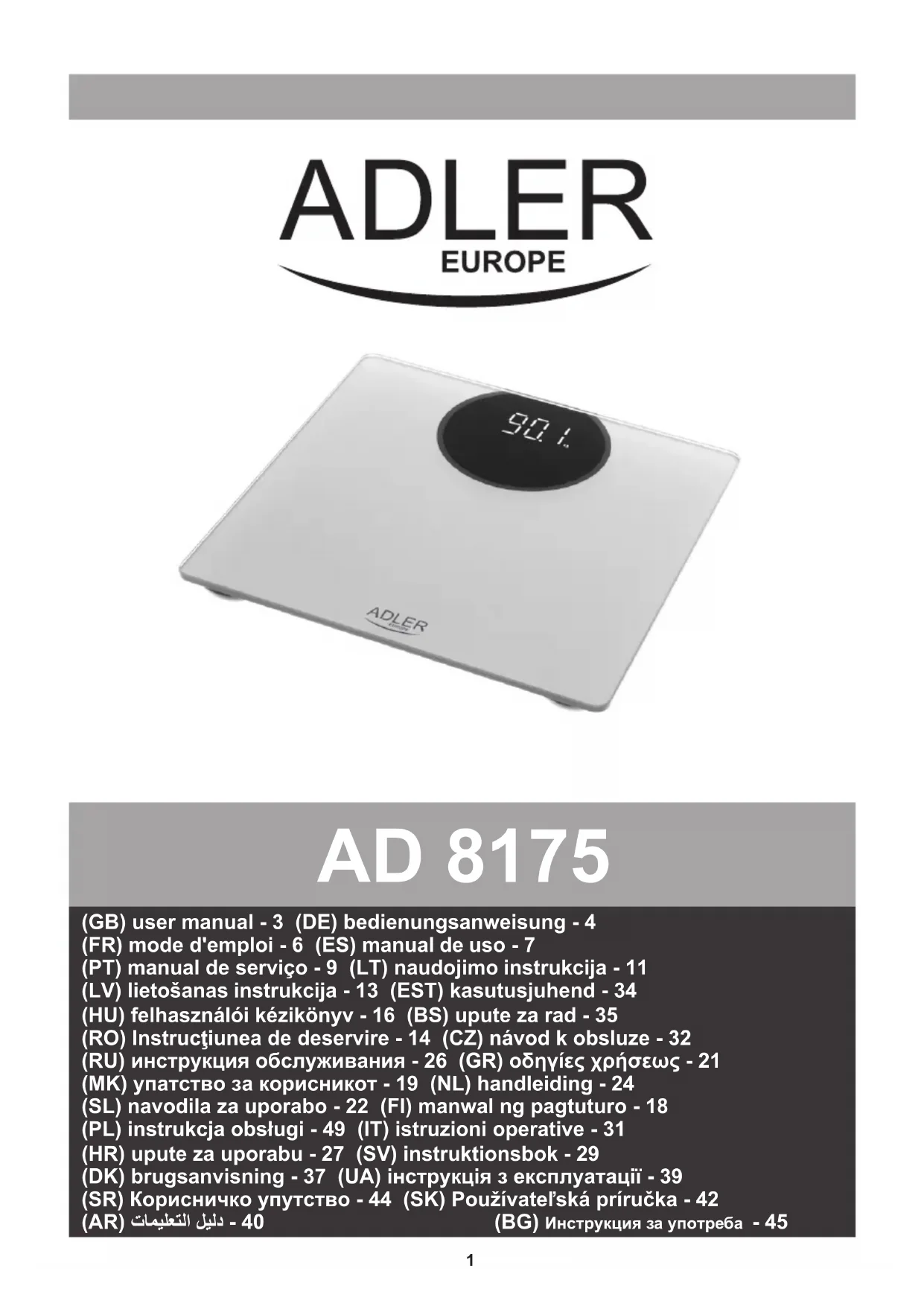 Retrouvez gratuitement la notice de l'appareil AD 8175 ADLER au format PDF.