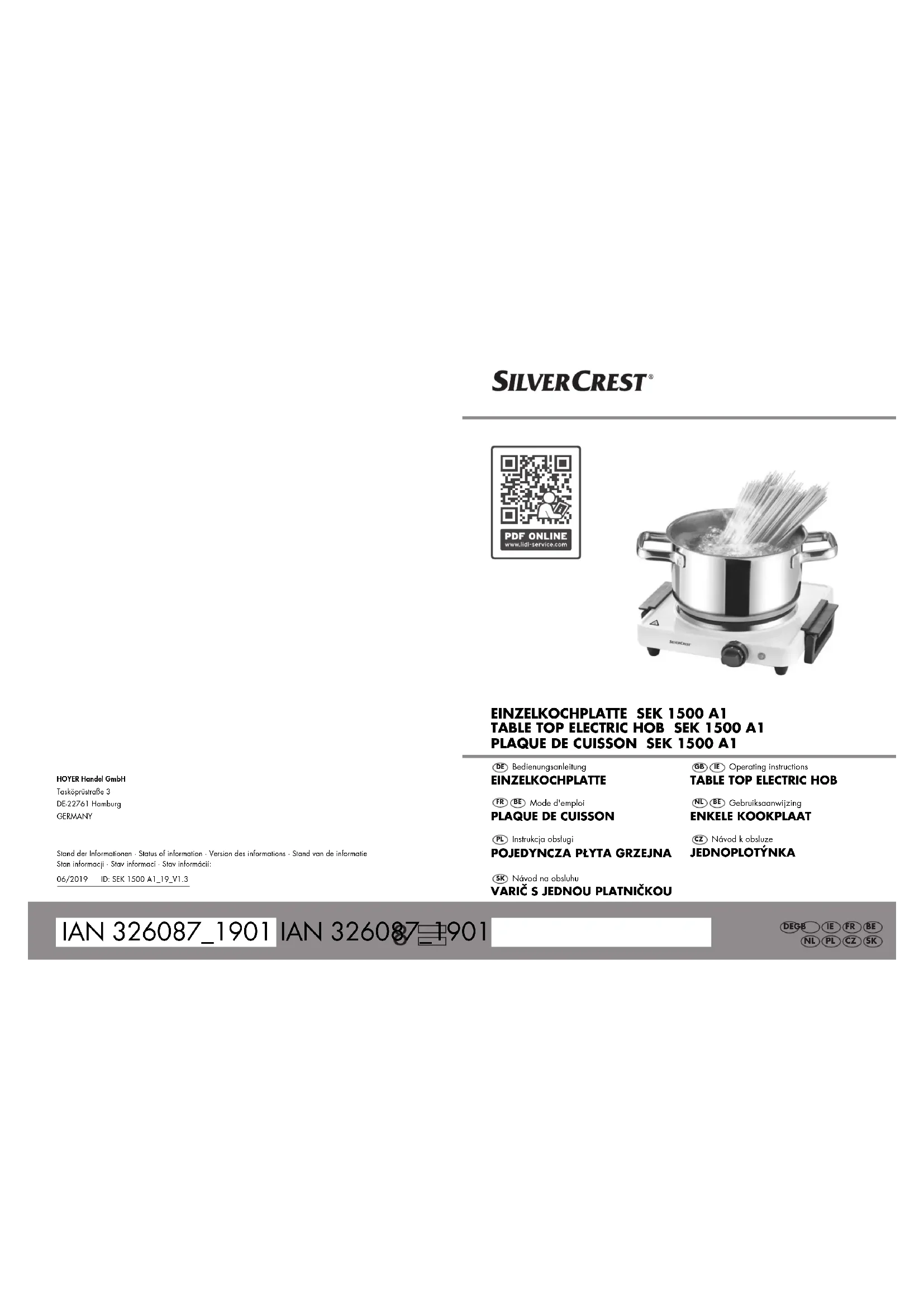 Retrouvez gratuitement la notice de l'appareil SEK 1500 A1 SILVERCREST au format PDF.