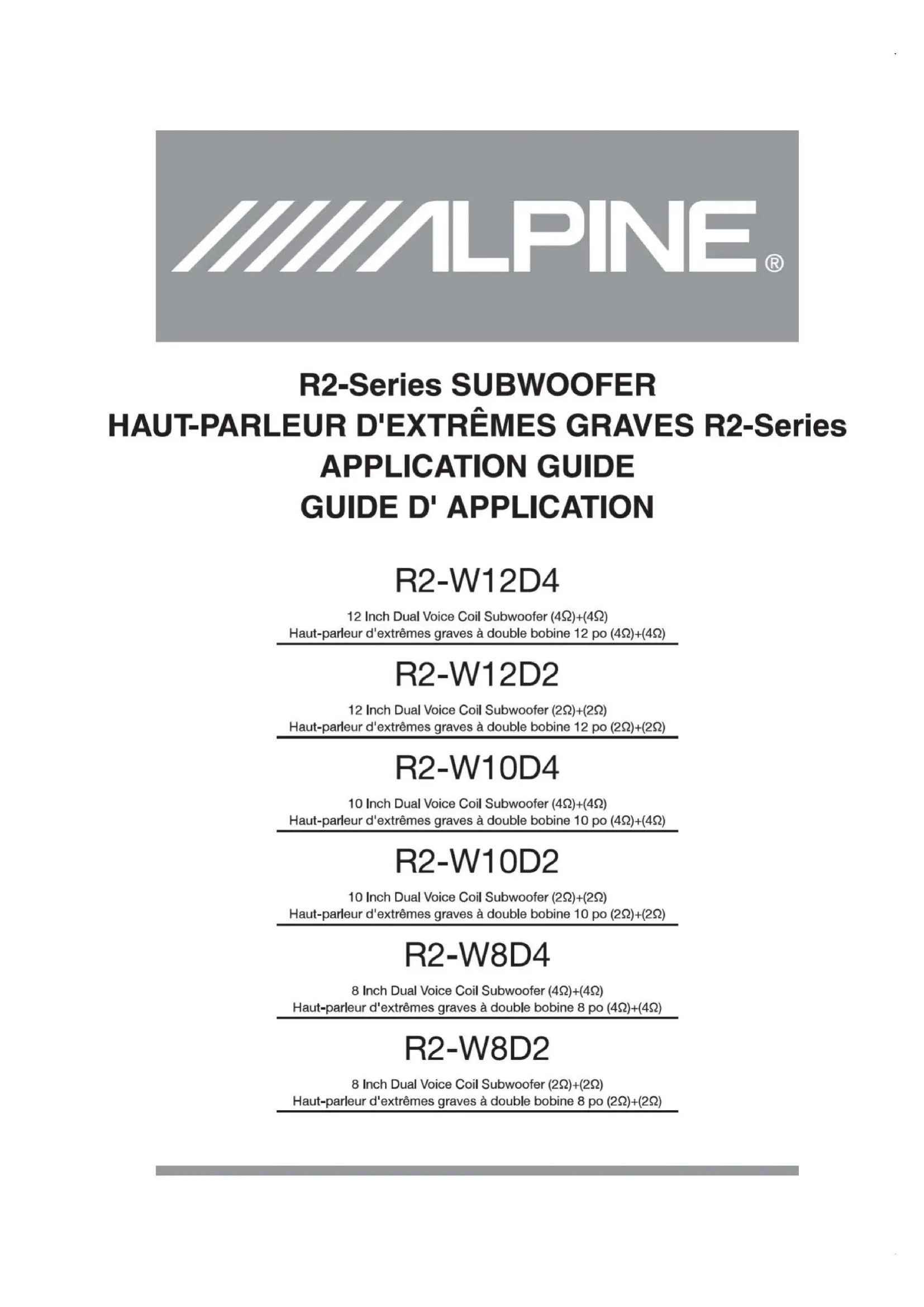 Téléchargez la notice de votre Caisson de basses au format PDF gratuitement ! Retrouvez votre notice R2W12D2 - ALPINE et reprennez votre appareil électronique en main. Sur cette page sont publiés tous les documents nécessaires à l'utilisation de votre appareil R2W12D2 de la marque ALPINE.