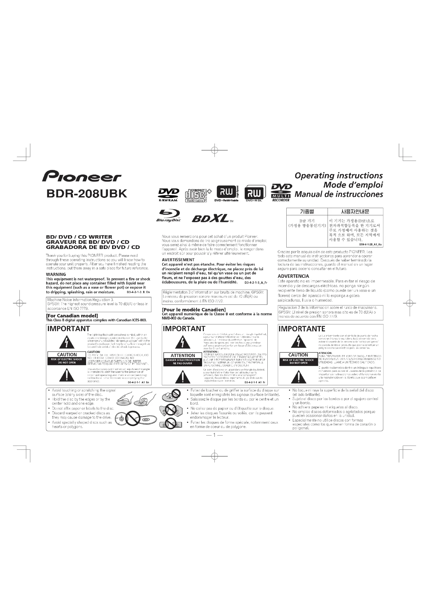 Téléchargez la notice de votre Lecteur blu-ray au format PDF gratuitement ! Retrouvez votre notice BDR2208 - PIONEER et reprennez votre appareil électronique en main. Sur cette page sont publiés tous les documents nécessaires à l'utilisation de votre appareil BDR2208 de la marque PIONEER.