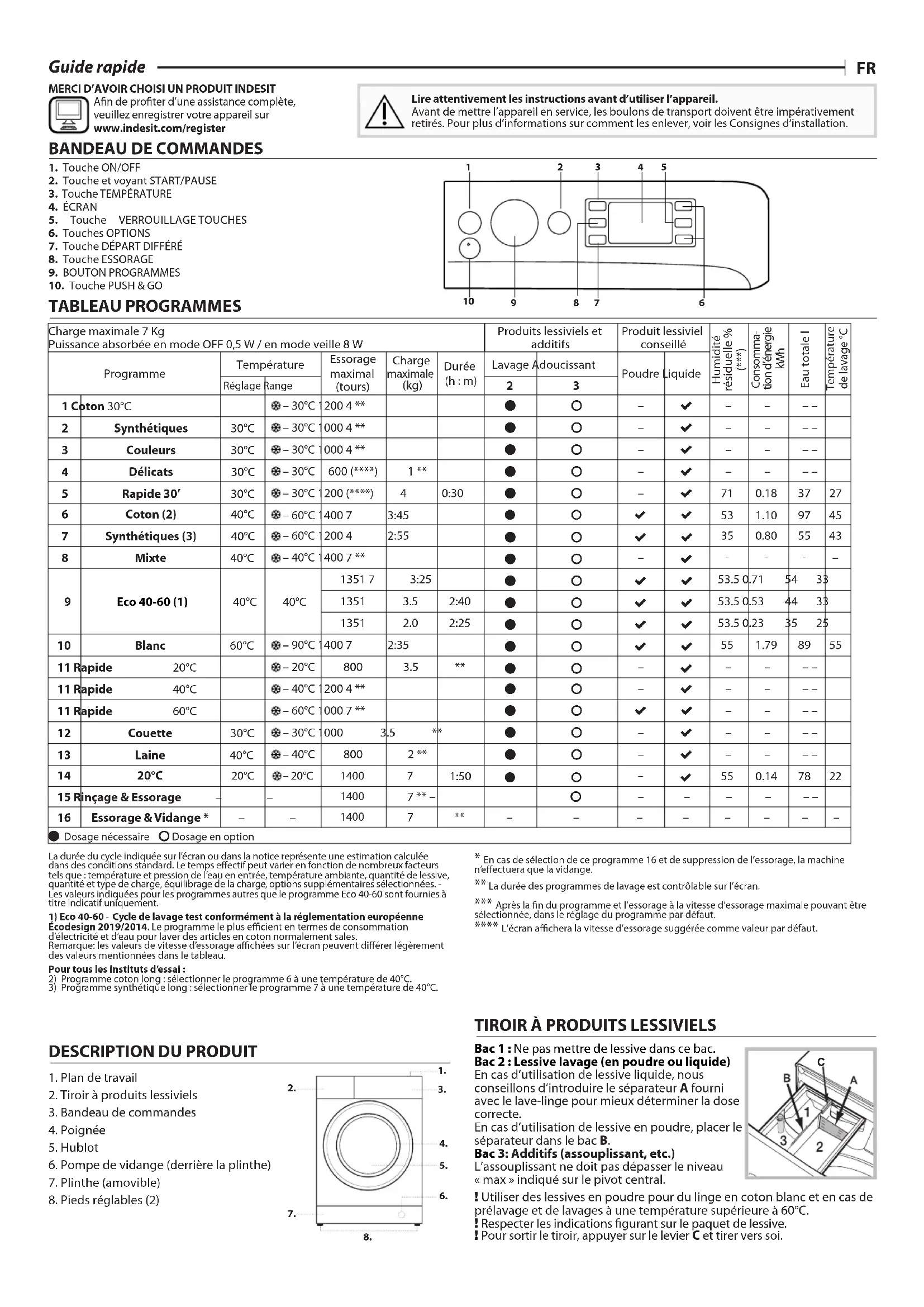 BWEBE 71485X WK N - Machine à laver INDESIT - Notice d'utilisation et mode d'emploi gratuit
