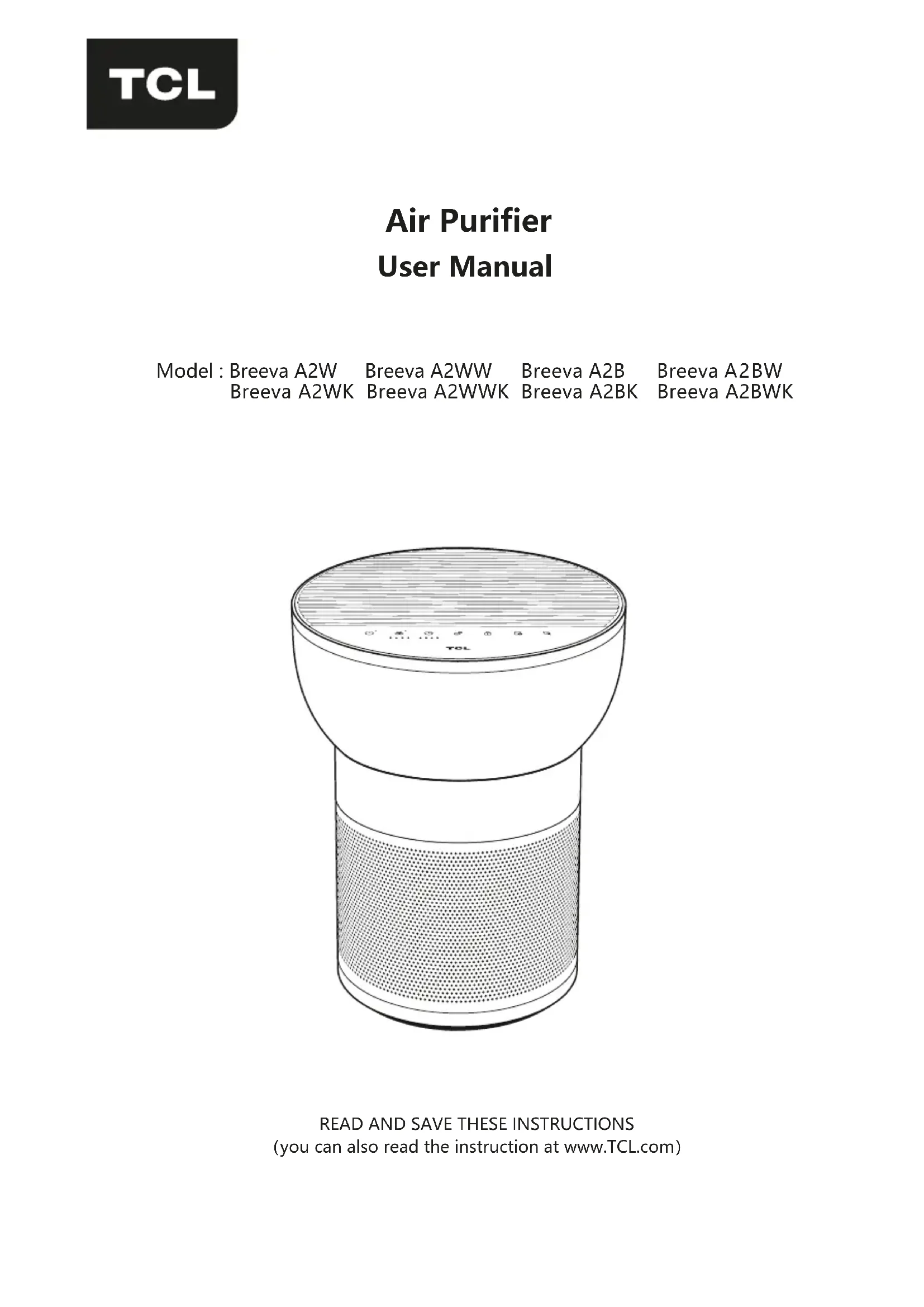Breeva A2WW - Purificateur d'air TCL - Notice d'utilisation et mode d'emploi gratuit
