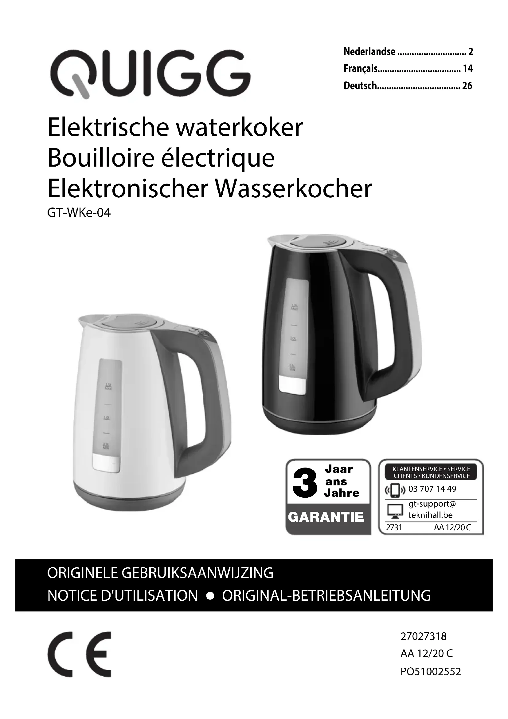 GTWKe04 - Bouilloire QUIGG - Notice d'utilisation et mode d'emploi gratuit