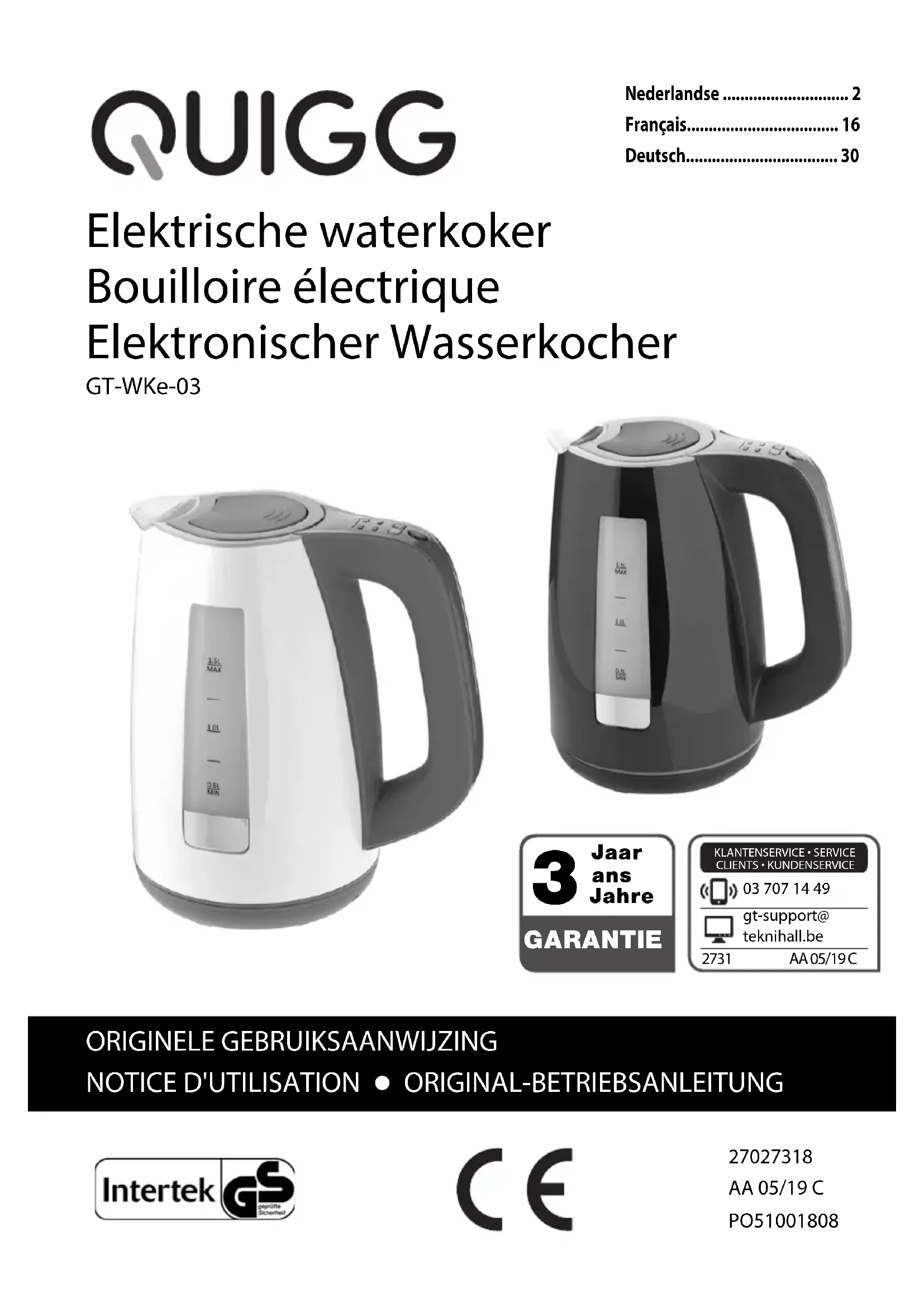 GTWKe03 - Bouilloire QUIGG - Notice d'utilisation et mode d'emploi gratuit