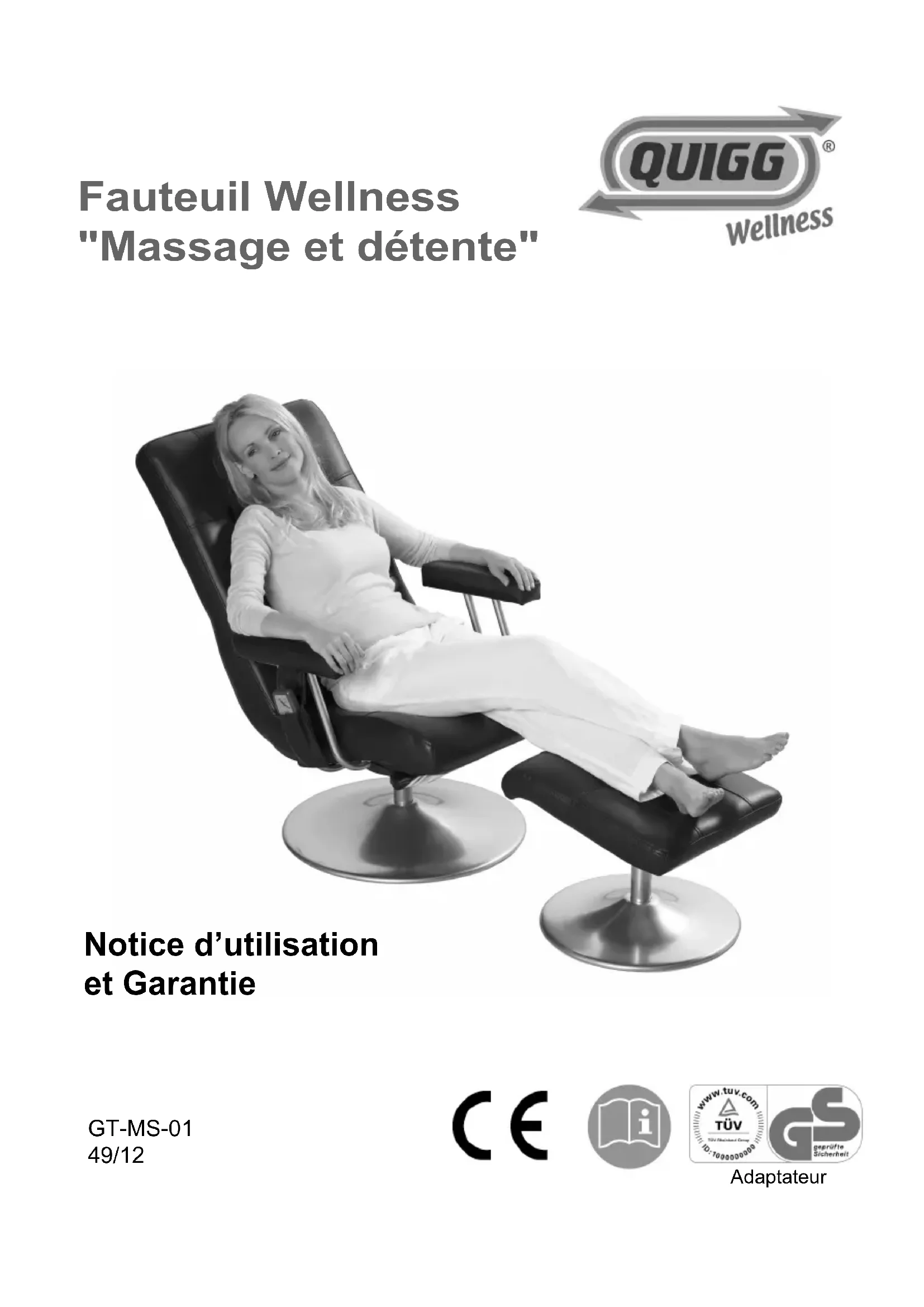 - Fauteuil Wellness "Massage et détente" Notice d’utilisation et Garantie GT-MS-01 49/12 Adaptateur 2 Sommaire Consignes de sécurité p. 3