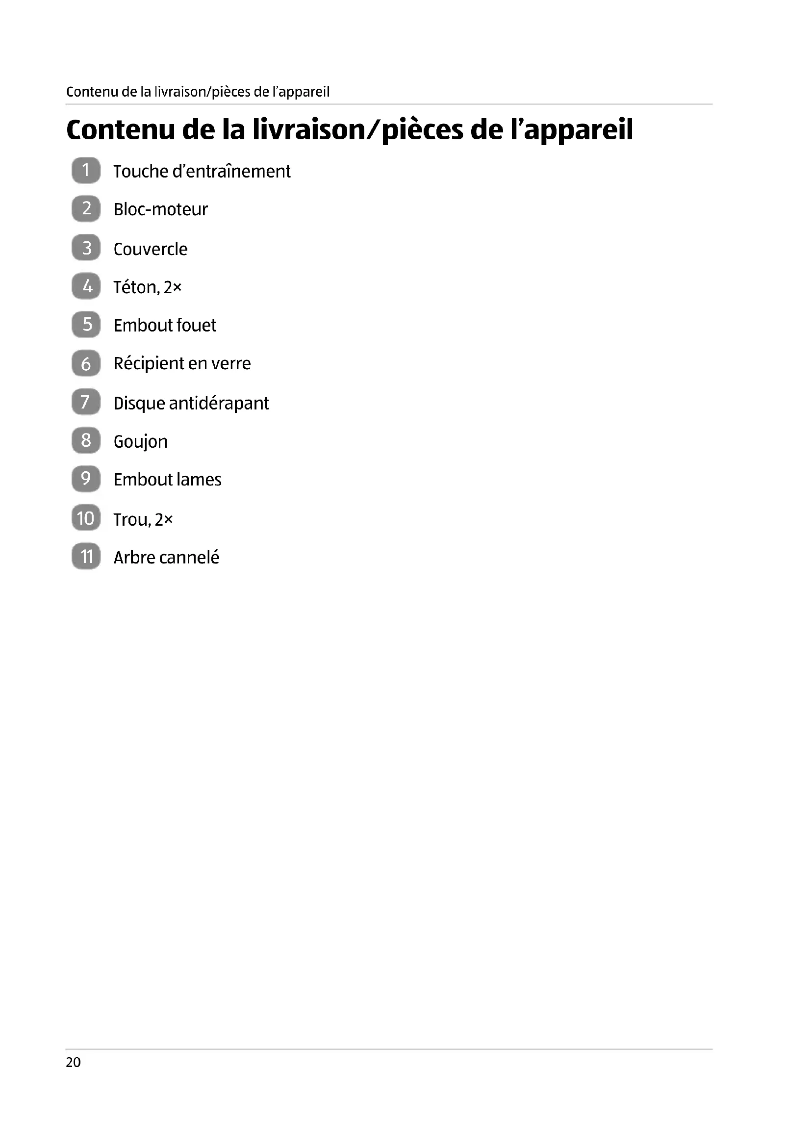 Contenu de la livraison/pièces de l’appareil