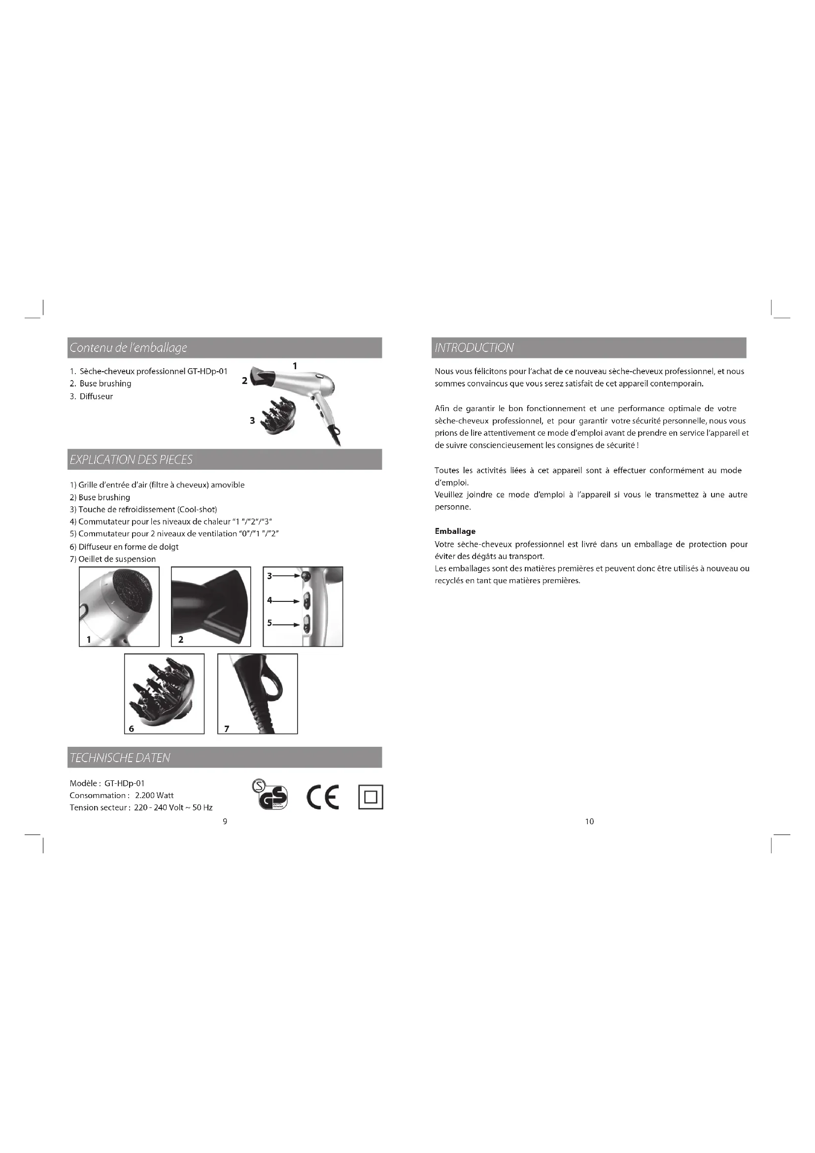TECHNISCHE DATEN Modèle : GT-HDp-01 Consommation : 2.200 Watt Tension secteur : 220 - 240 Volt ~ 50 Hz