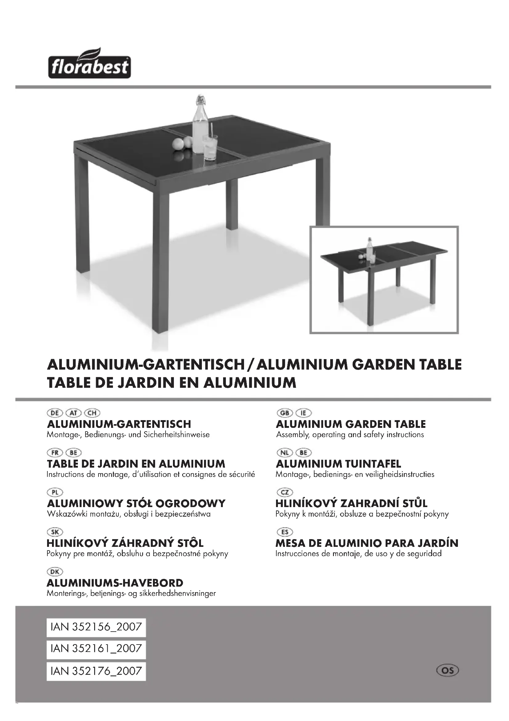 ET LES ENFANTS ! Ne laissez jamais les enfants manipuler les emballages sans surveillance. Risque d‘asphyxie. Nous vous recommandons d‘ef- fectuer le montage à deux pour éviter toute blessure corporelle et tout dégât matériel sur le produit. Agissez prudemment lors du dé- pliage et du pliage du produit afin d‘éviter blessures et coince- ments. Avant chaque utilisation, vérifiez que le produit ne présente aucune trace de dommages ou d‘usure. Utilisez uniquement le produit en parfait état. Ne pas utiliser le produit si vous constatez ou sup- posez la présence de dommages. Veillez à utiliser le produit sur une surface stable. Assurez-vous que le produit se trouve avant utilisation sur une surface stable et plane. Dans la cas contraire, le produit pourrait se trouver en position instable et tomber/basculer sur le côté. Des blessures ou dommages matériels peuvent en résulter. 50 kg Notez que la charge max. supportée est de 50 kg. Lorsque cette limite de poids est dépassée, des blessures ou dom- mages matériels peuvent en ré- sulter. Assurez-vous que personne, en particulier des enfants, ne monte sur le produit ou ne s‘y appuie. Le produit peut basculer. Ne jamais s‘asseoir, ni prendre appui sur le produit. Veillez à ce que vos mains s‘ac- cèdent pas au mécanisme de pliage, ceci afin d‘éviter toute blessure. Lors du dépliage, veillez à ce que le mécanisme de pliage s‘enclenche correctement avant d‘utiliser le produit. 352156_352161_352176_2007_flo_Aluminium_Gartentisch_content_OS.indd 20352156_352161_352176_2007_flo_Aluminium_Gartentisch_content_OS.indd 20 12.08.20 16:2212.08.20 16:2221 FR/BE Veillez à ce que le produit soit complètement ouvert avant de l‘utiliser. Le produit n‘est pas un jouet et il ne doit être utilisé que sous la surveillance d‘un adulte. Le produit ne doit pas être esca- ladé et n‘est pas un jouet. En cas de conditions météorolo- giques extrêmes, par ex. en cas de vent fort, sécurisez le produit. N‘utilisez pas le produit à proxi- mité d‘un feu ouvert.