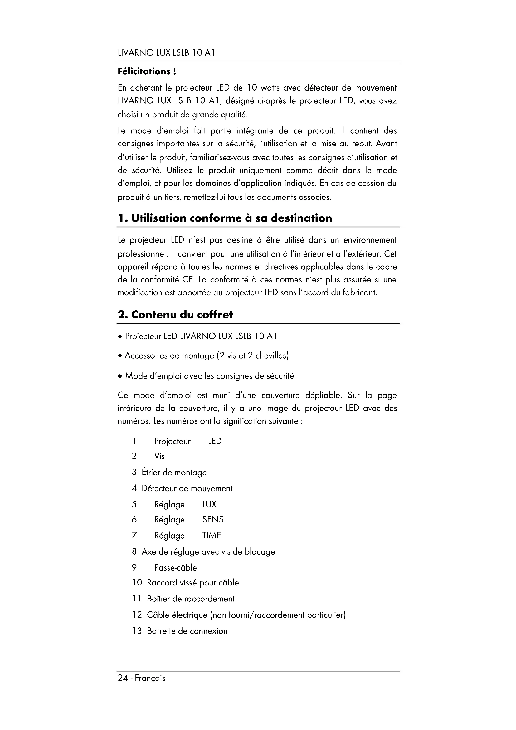 En achetant le projecteur LED de 10 watts avec détecteur de mouvement LIVARNO LUX LSLB 10 A1, désigné ci-après le projecteur LED, vous avez besoin d'un produit de grande qualité.