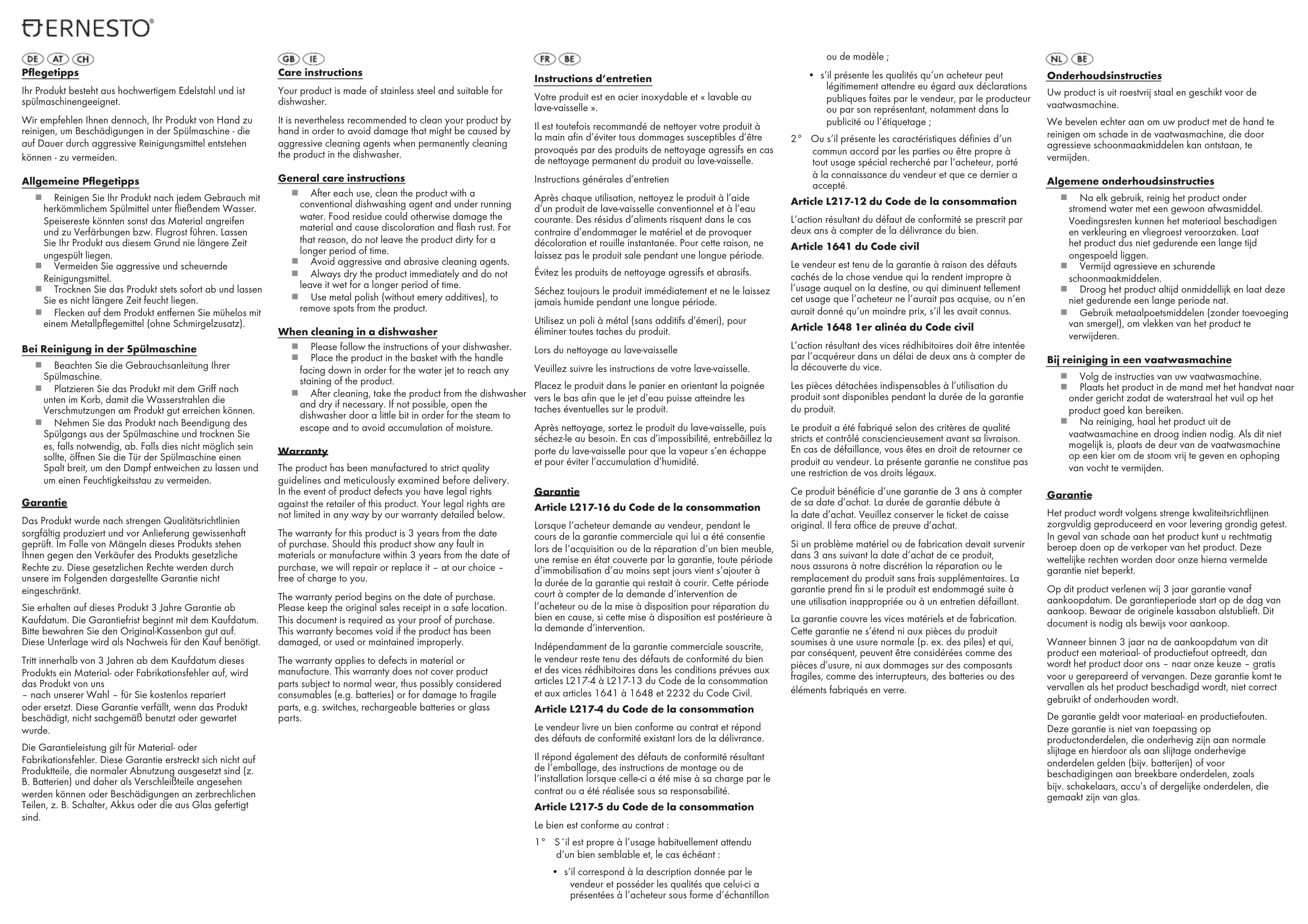 Les pièces de rechange peuvent être commandées auprès du service client d'Ernesto ou dans les magasins agréés.