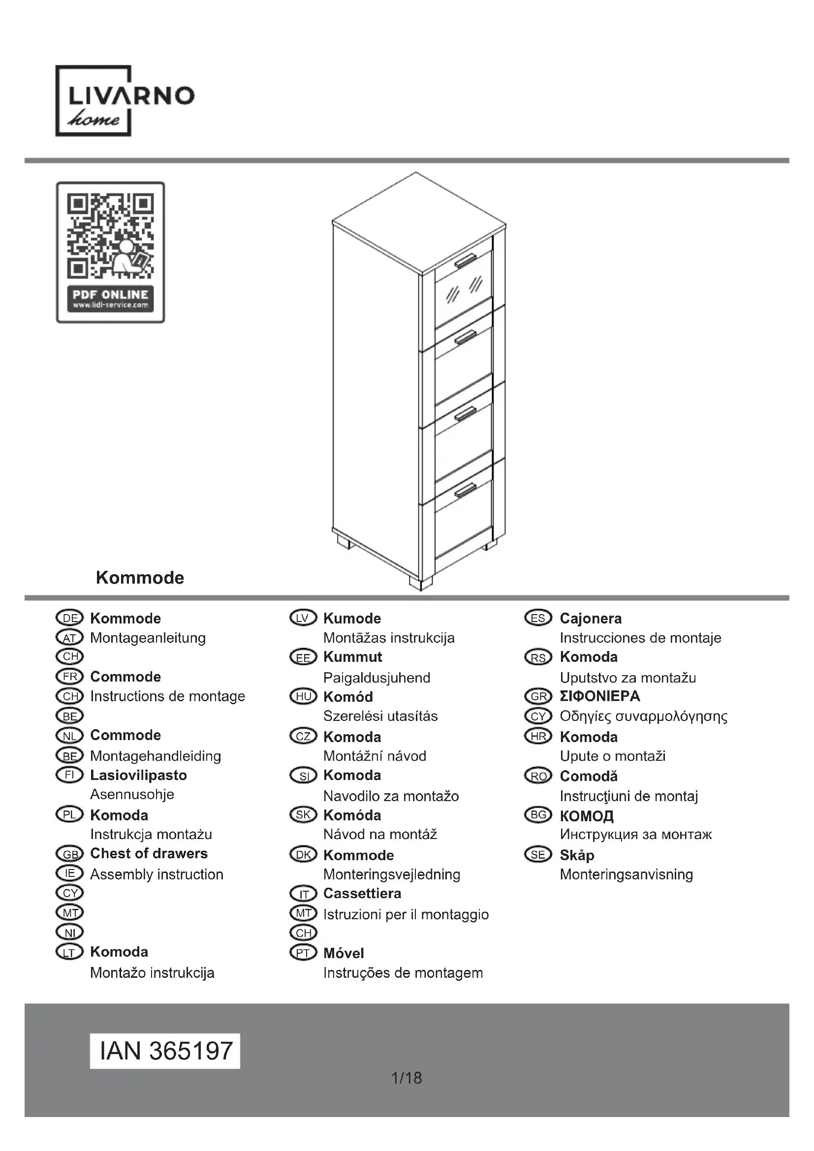 IAN 365197 - Meuble de rangement Livarno Lux - Notice d'utilisation et mode d'emploi gratuit