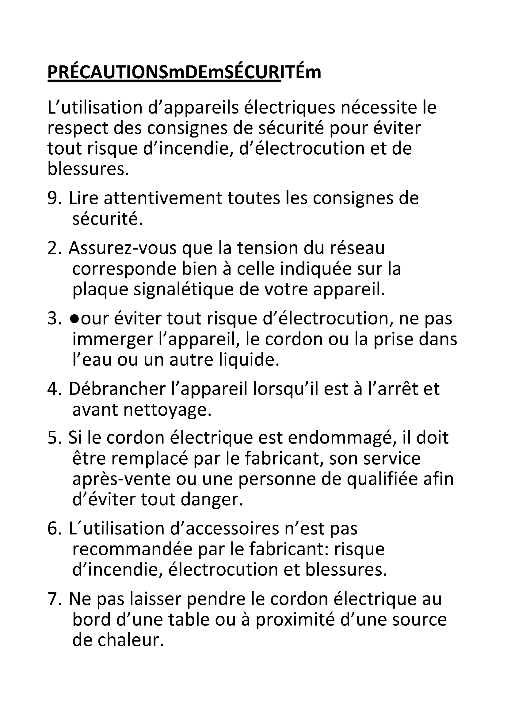 recommandée par le fabricant: risque d’incendie, électrocution et blessures.