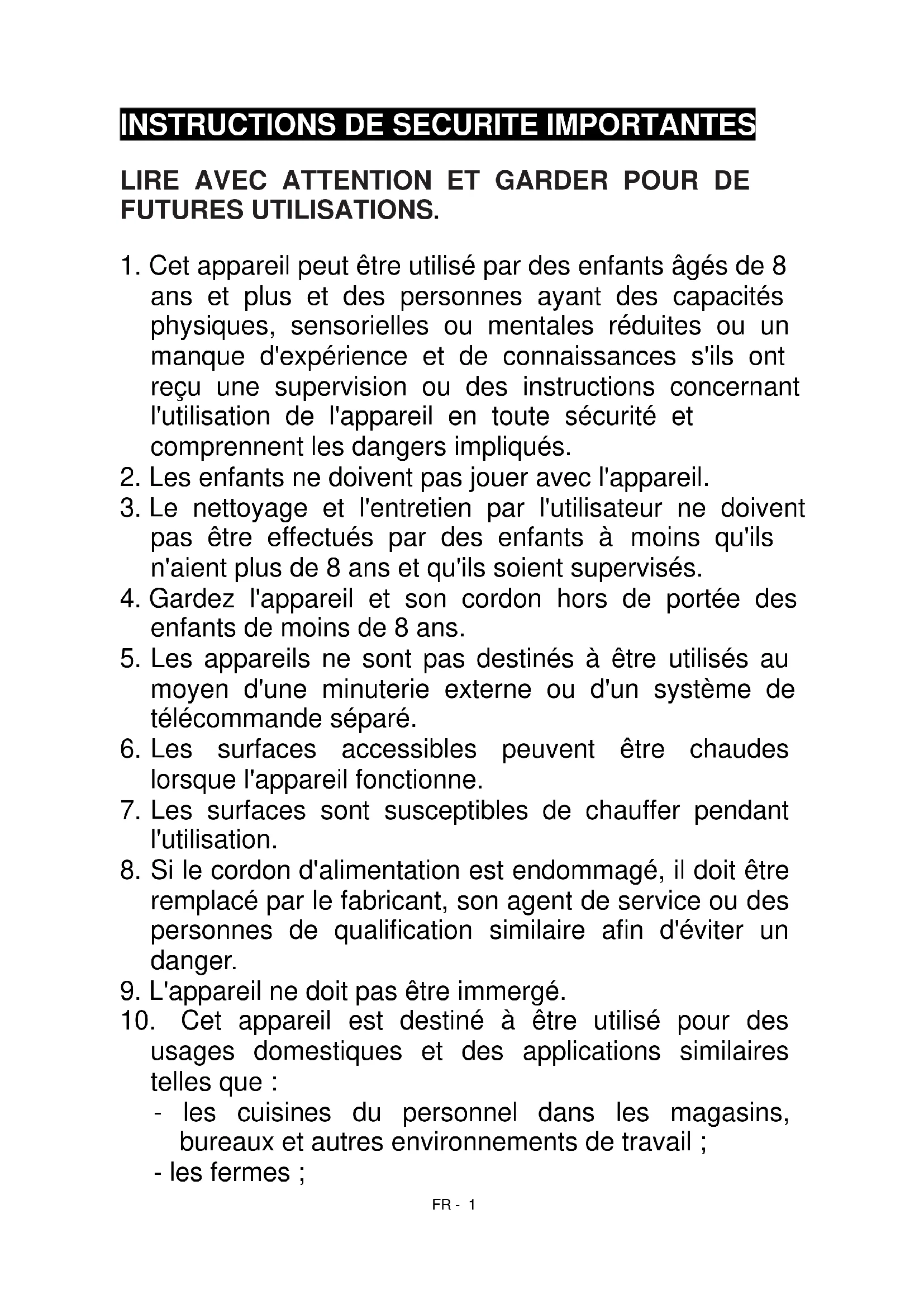 10. Cet appareil est destiné à être utilisé pour des