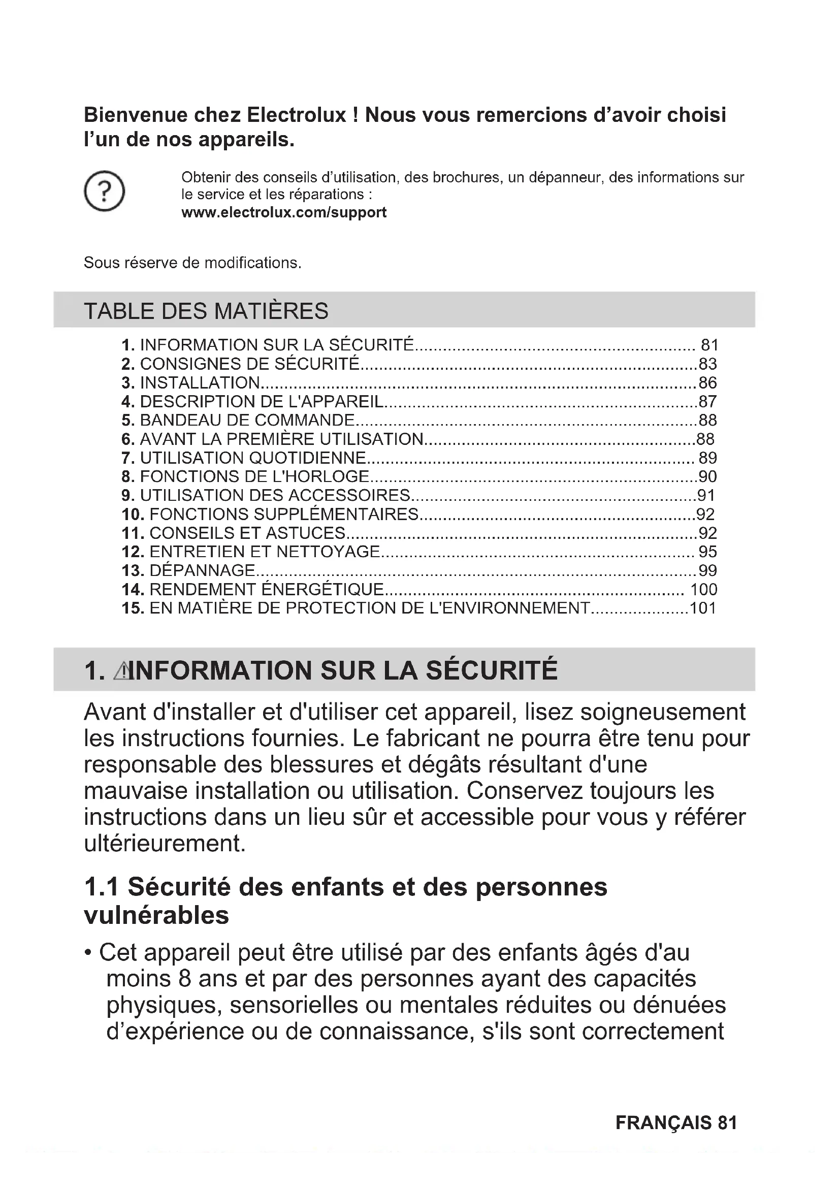 Bienvenue chez Electrolux! Nous vous remercions d'avoir besoin l'un de nos apparèils.