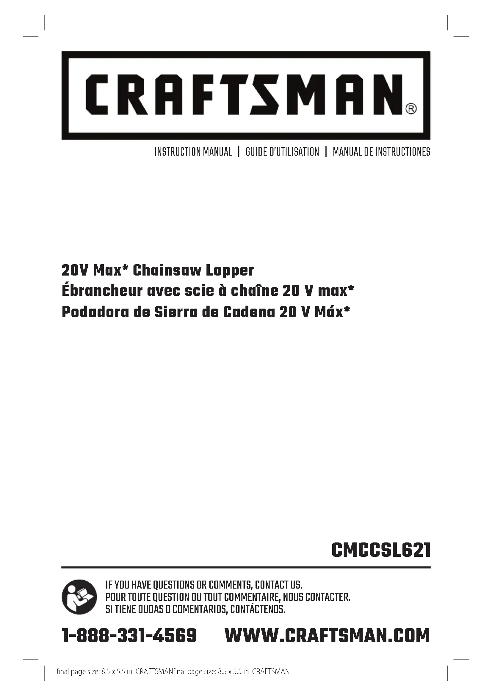 blessures, lire le mode d’emploi del’outil Pour toute question ou remarque au sujet de cet outil ou de tout autre outil CRAFTSMAN composez le numéro sans frais : 1-888-331-4569.